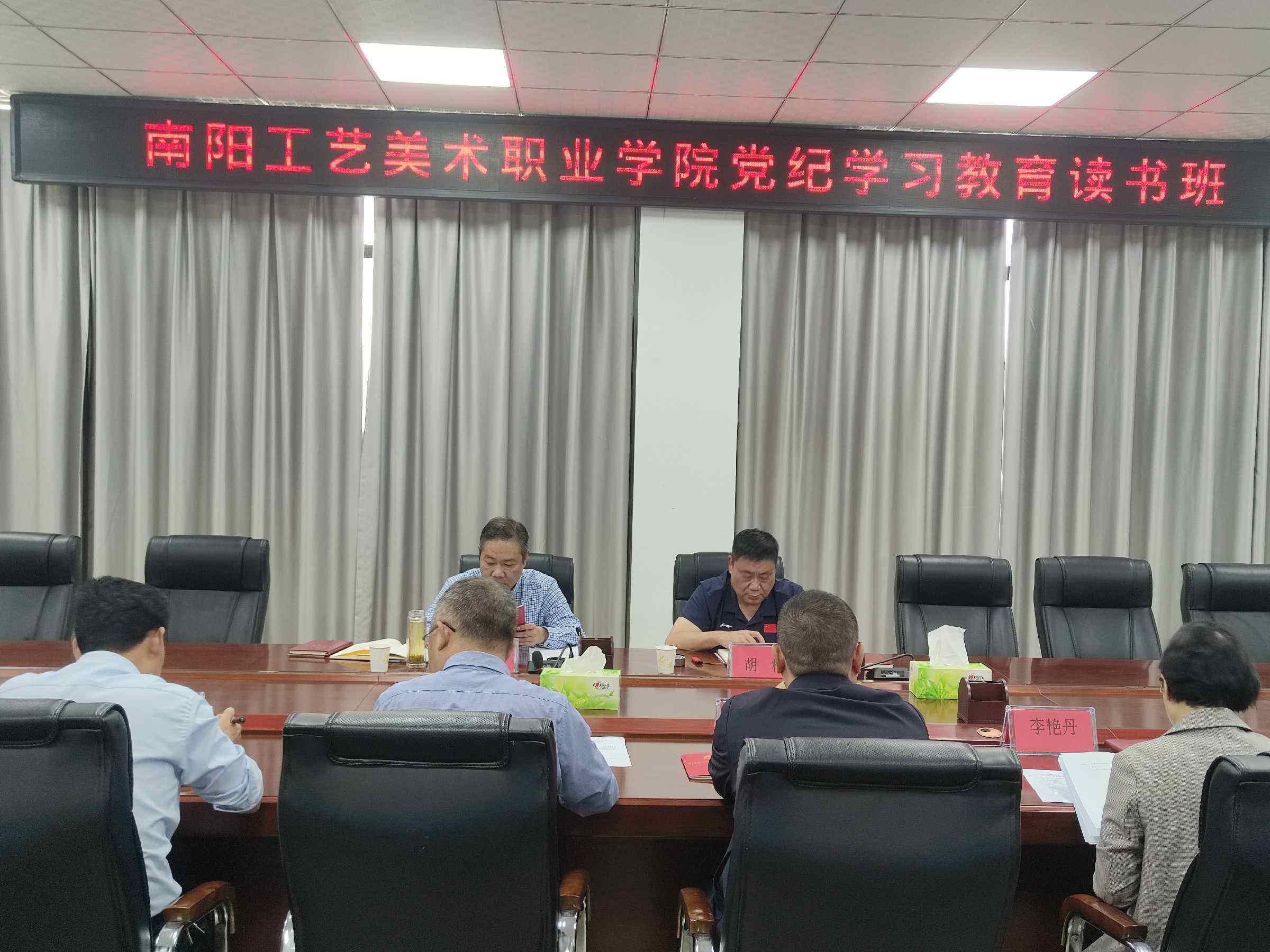 4月24日上午,南阳工艺美术职业学院举办为期两天的党纪学习教育读书班,校党委书记赵毅辉主持学习,校党委副书记、校长胡楠,纪委书记辛玉建,党委委员、副校长王道明出席,副校长李艳丹,秦英翔、梁浩、李新、张彬参加。