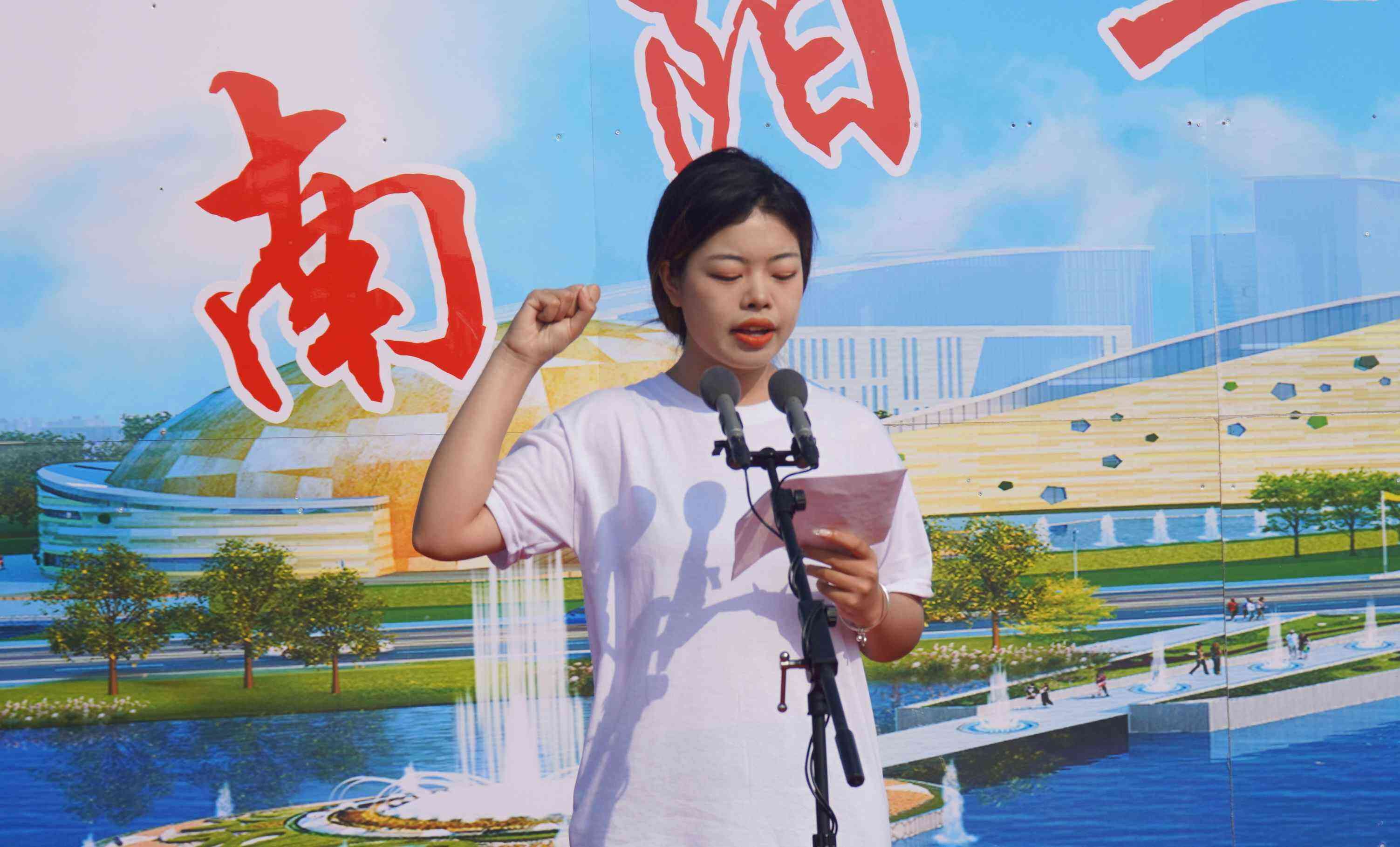 唐天嘉老师代表裁判员上台宣誓。