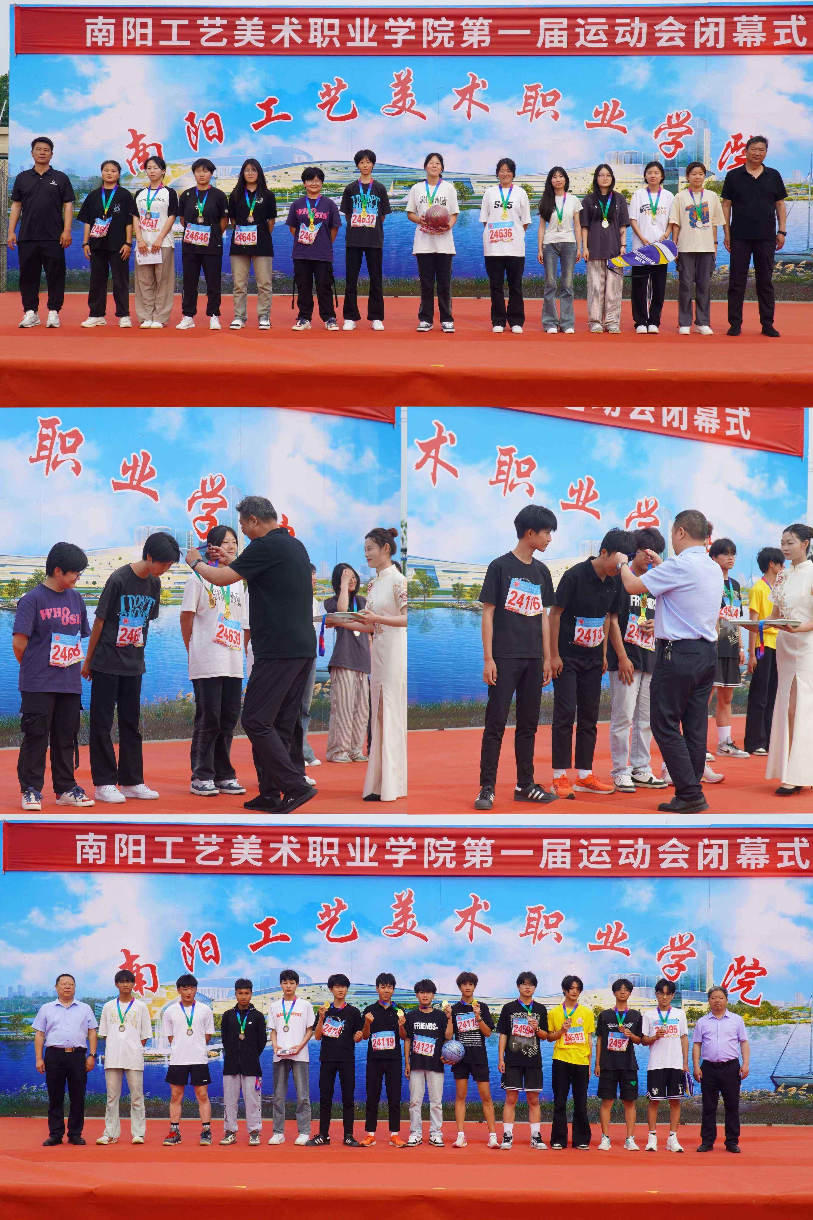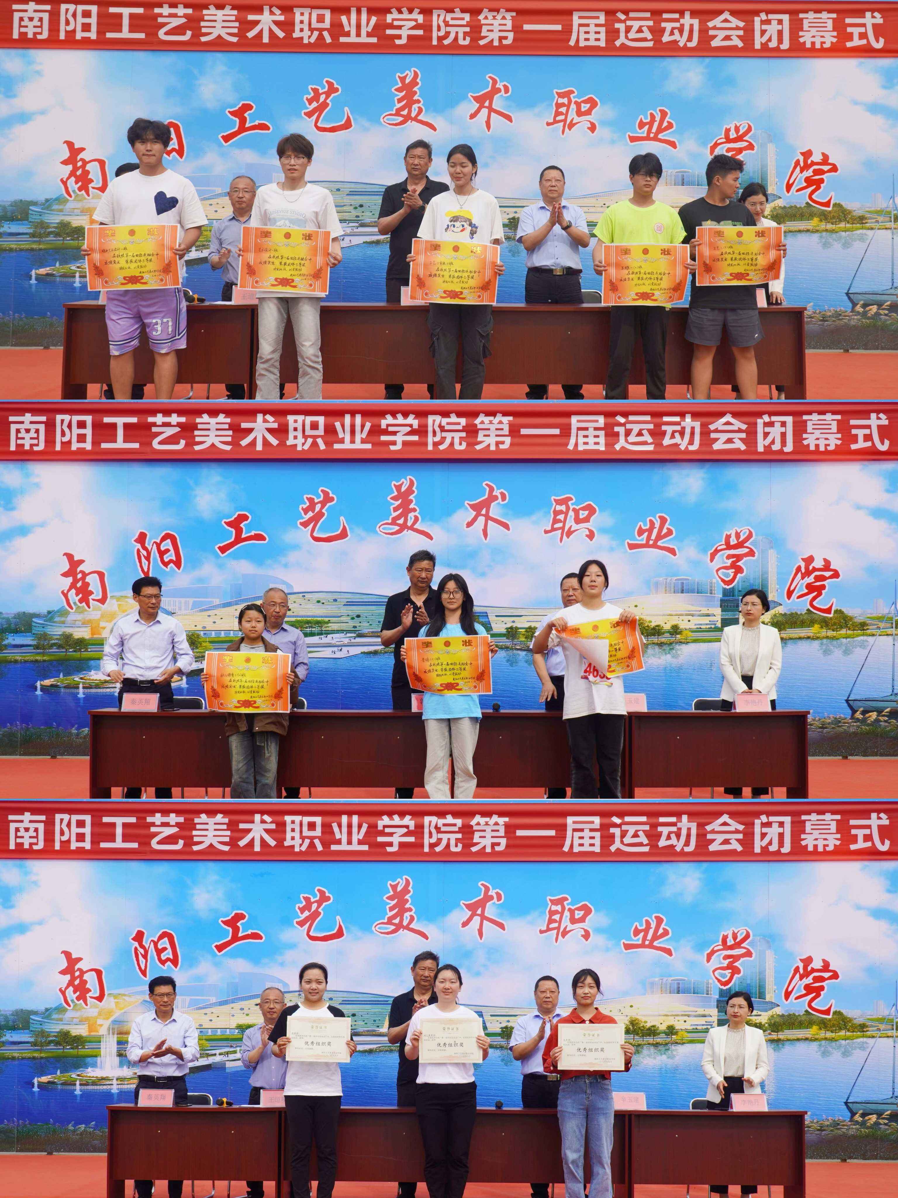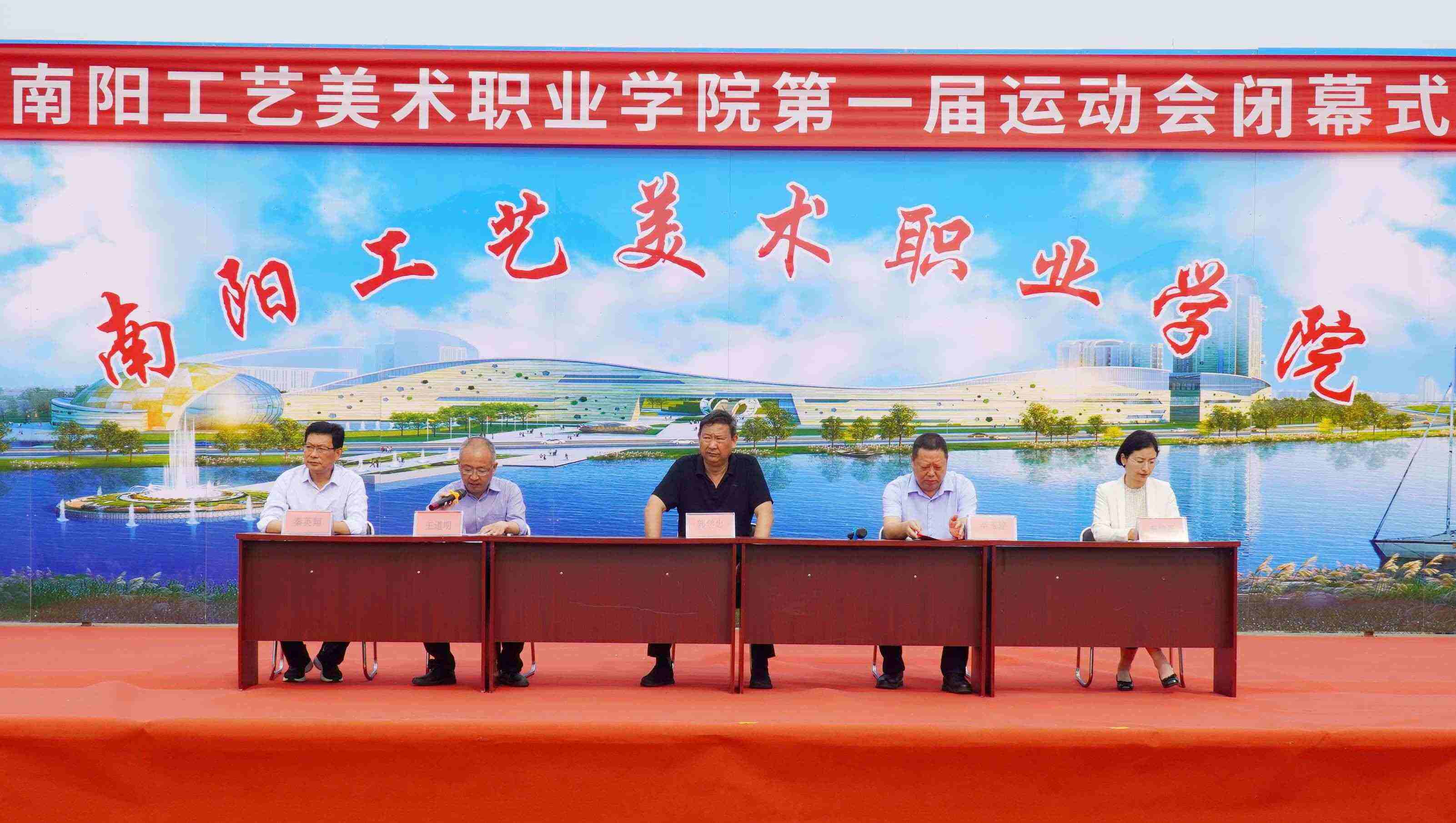 5月9日上午,南阳工艺美术职业学院第一届田径运动会暨第一届教工运动会在学校田径场圆满闭幕!南阳工艺美术职业学院副书记郭学中、纪委书记辛玉建、副校长王道明、副校长李艳丹、原镇平县工艺美术中等职业学校校长秦英翔出席并为获奖团队颁奖,全体师生参加。