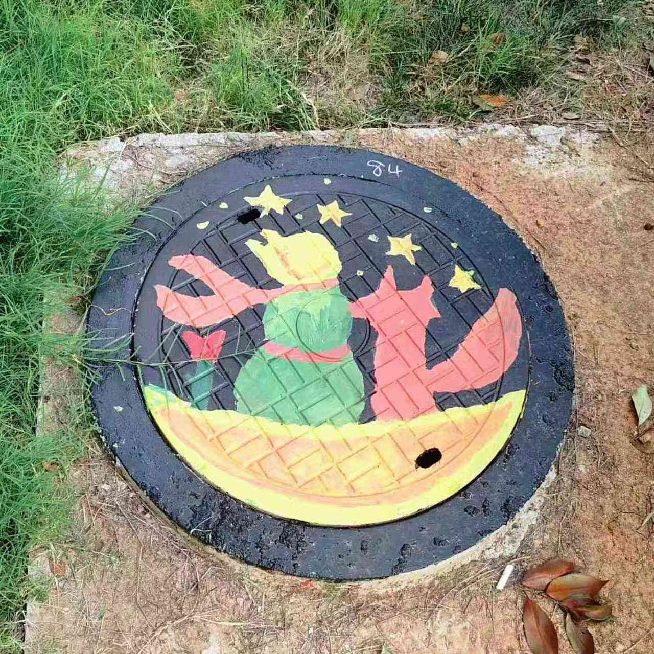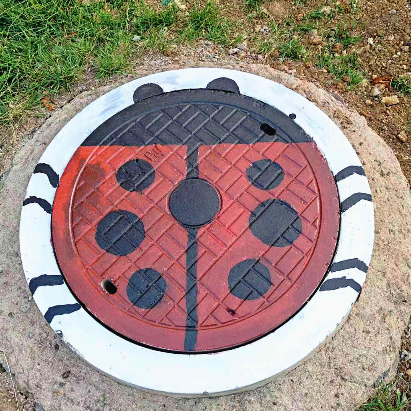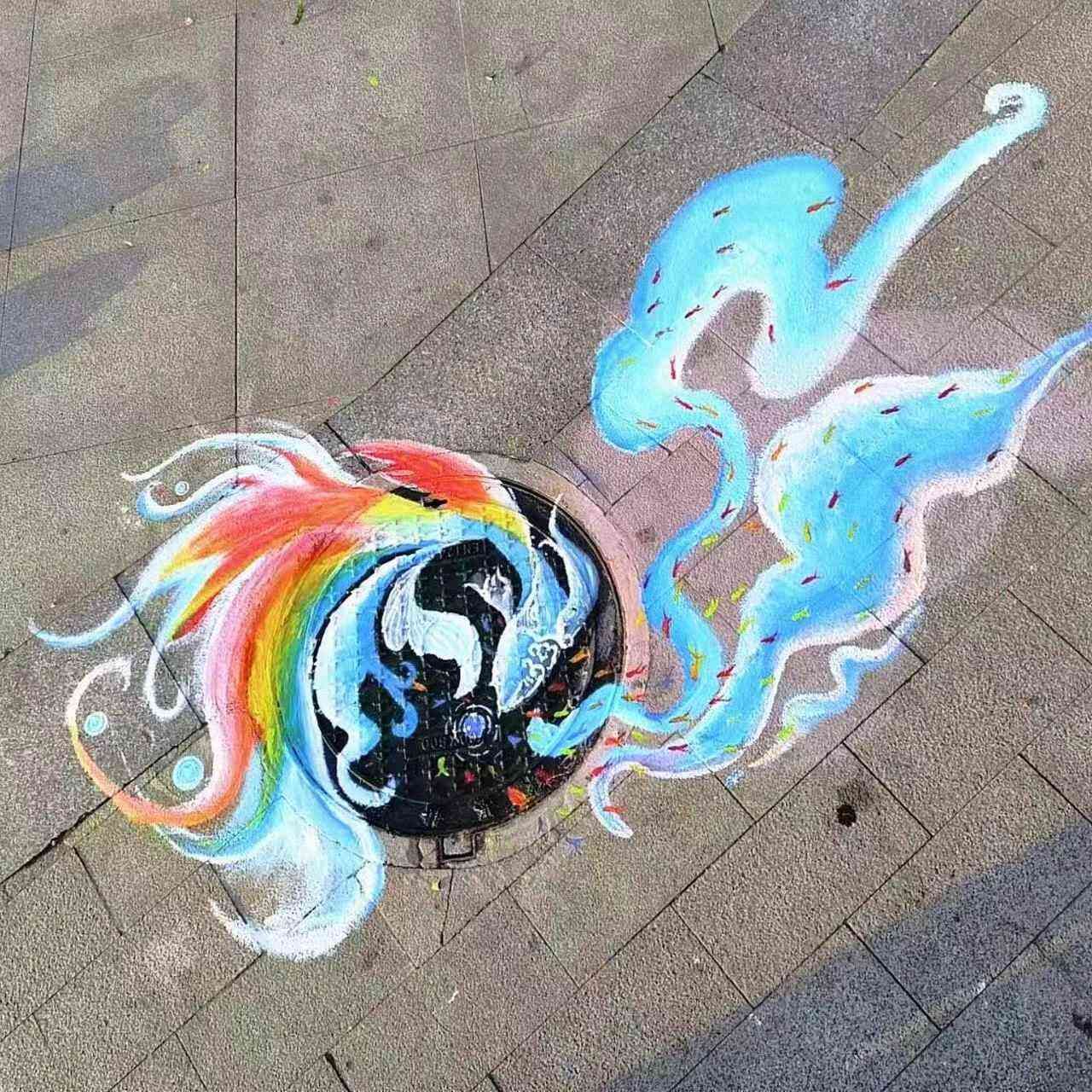 在专业老师们的指导下,同学们精选图案,认真构思,利用井盖的凹凸效果和纹理进行创意、上色、勾边,用一支笔,一双手认真绘出心中所想。他们构思,调色,执笔,成画,一气呵成。他们思考,讨论,协作,配合,高效进行。他们用自己的妙思巧手,创造出不同风格的作品。