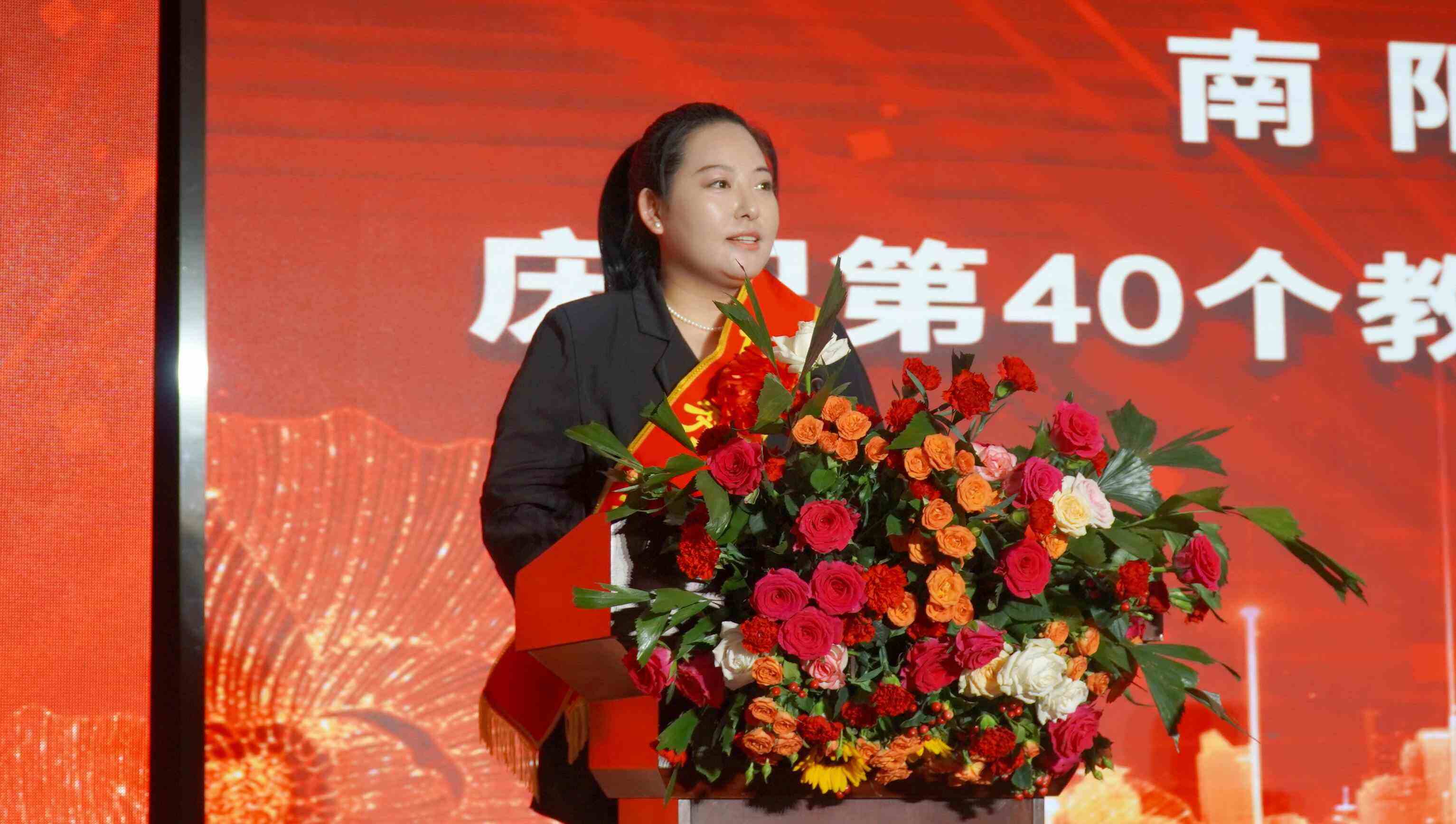 优秀教师代表韩丽君,通过回望教育之路,总结工作经验。她以学生为中心,时刻保持对教育的敬畏之心,以满腔的热情和不懈的努力,点亮每一颗年轻的心灵。