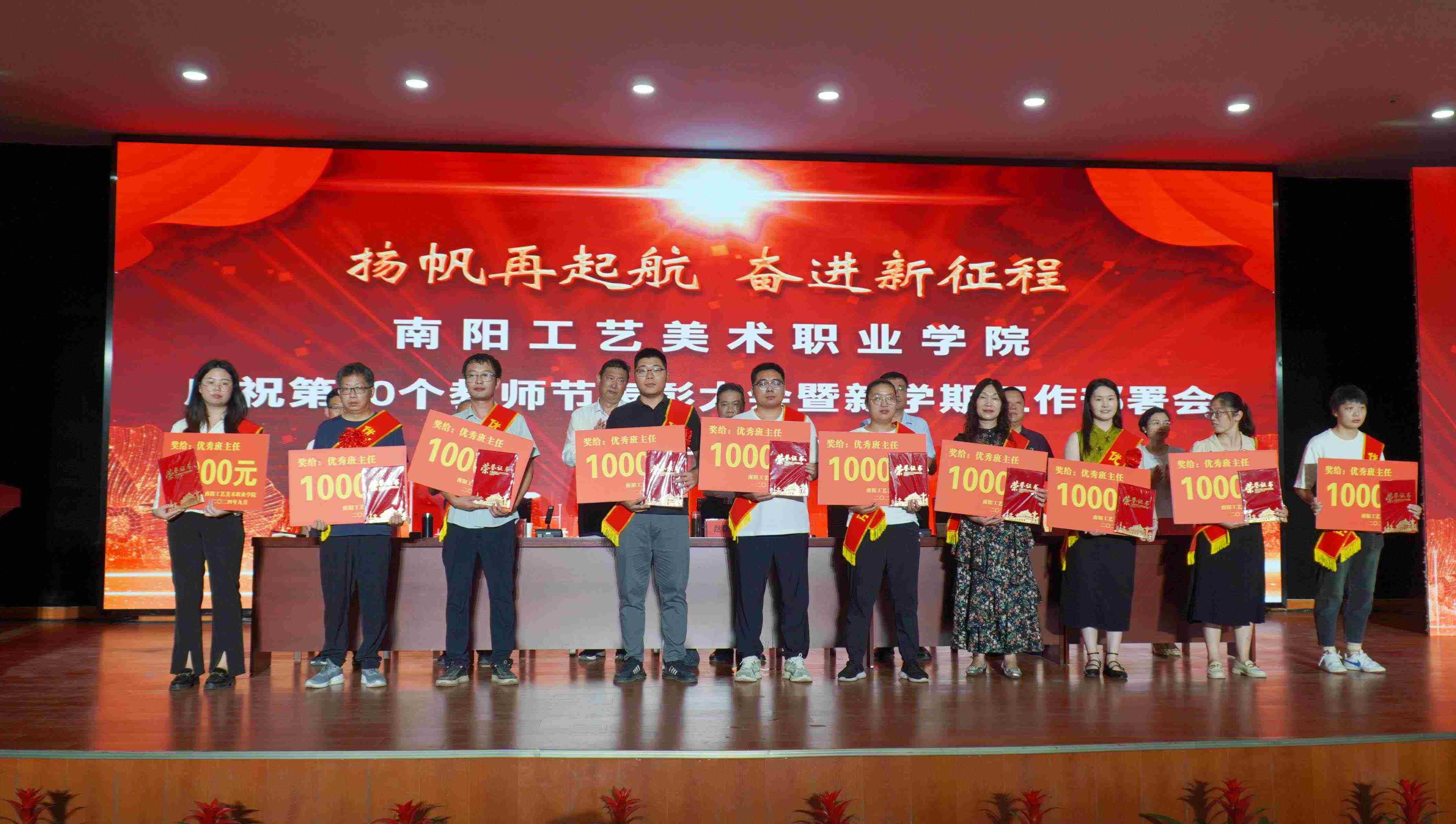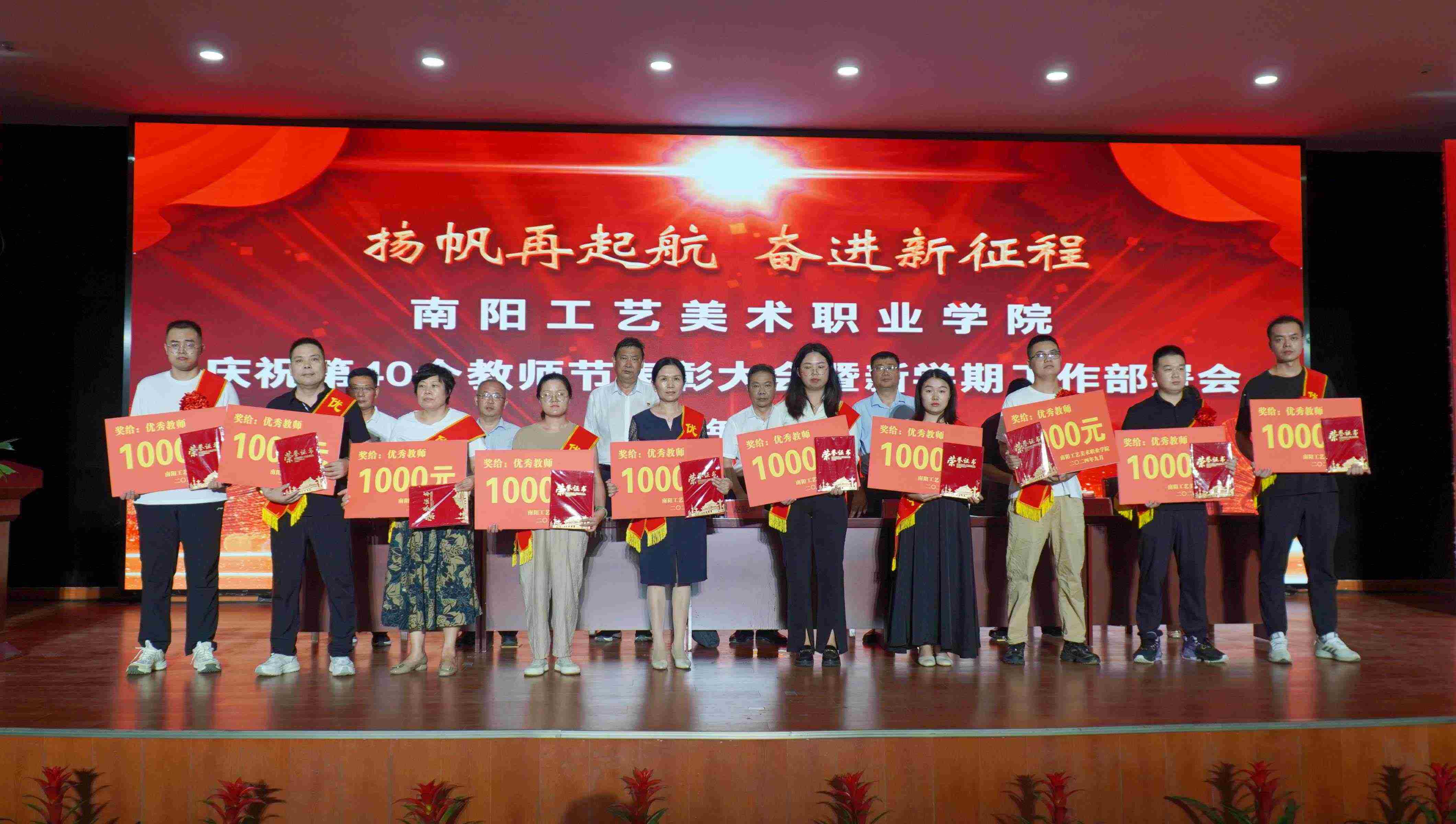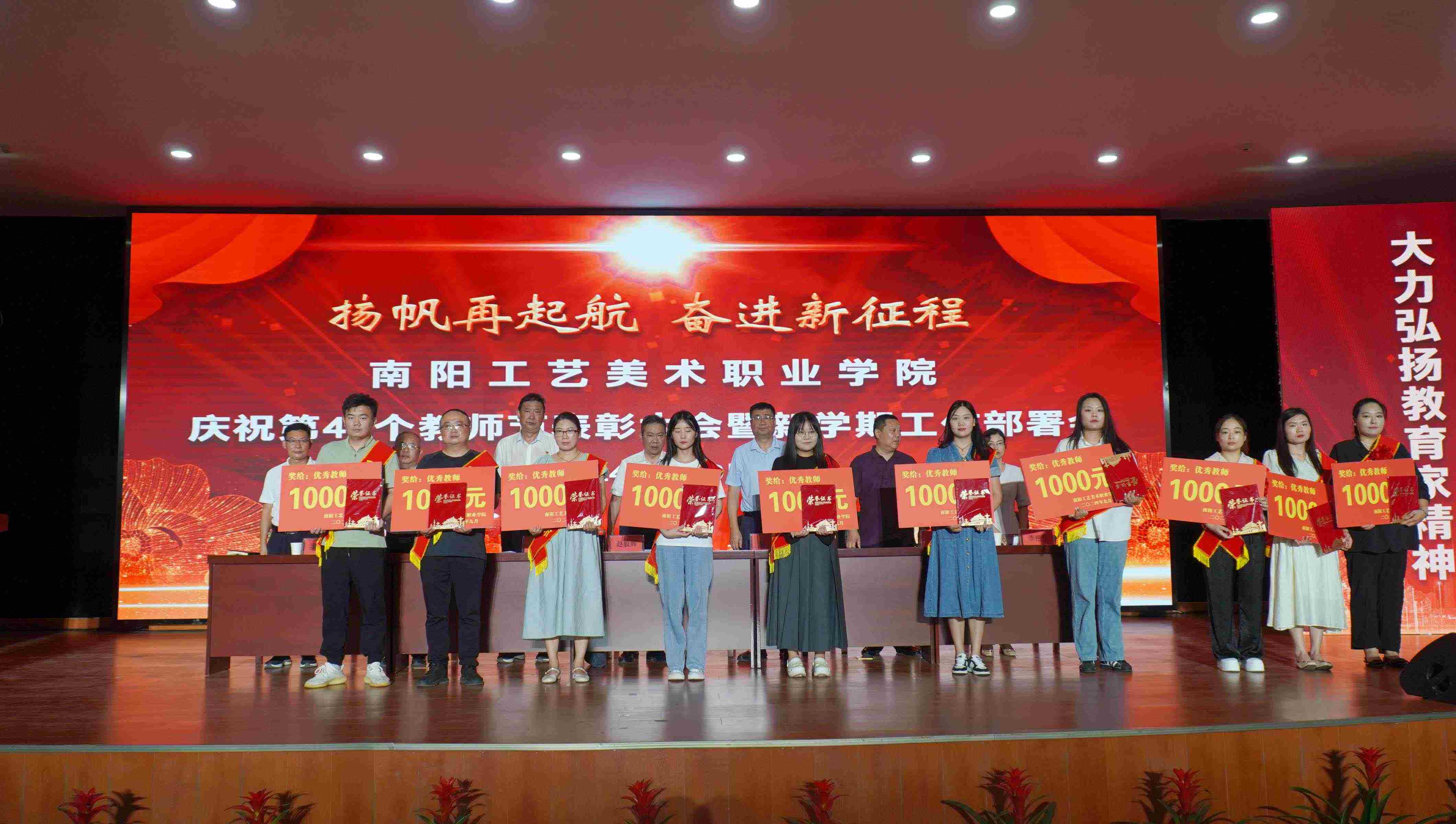 校党委副书记郭学中,党委委员、副校长王道明分别宣读了《南阳工艺美术职业学院关于表彰2023-2024学年优秀教师的决定》和《南阳工艺美术职业学院关于表彰2023-2024学年优秀班主任的决定》。随后,学校领导为受表彰的优秀教师和优秀班主任颁发了荣誉证书和奖金。