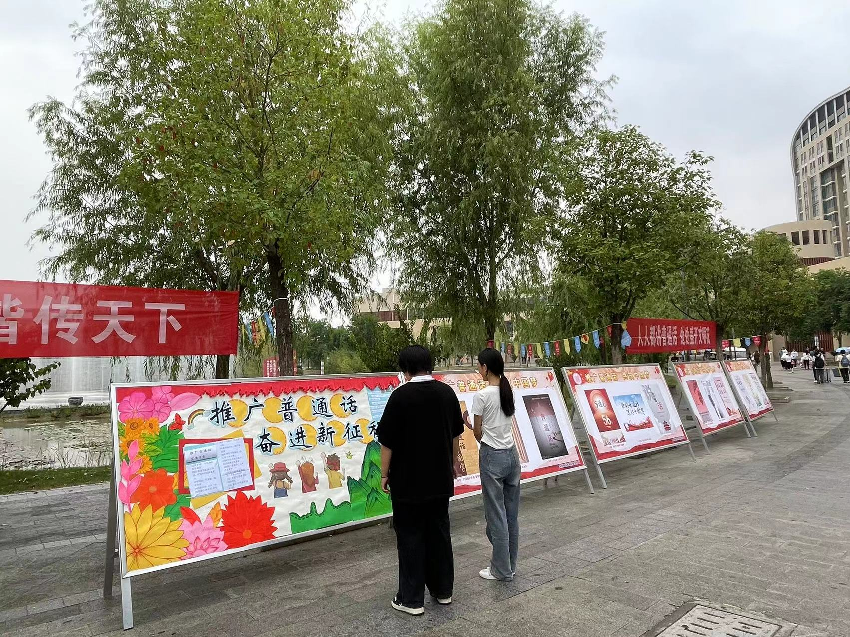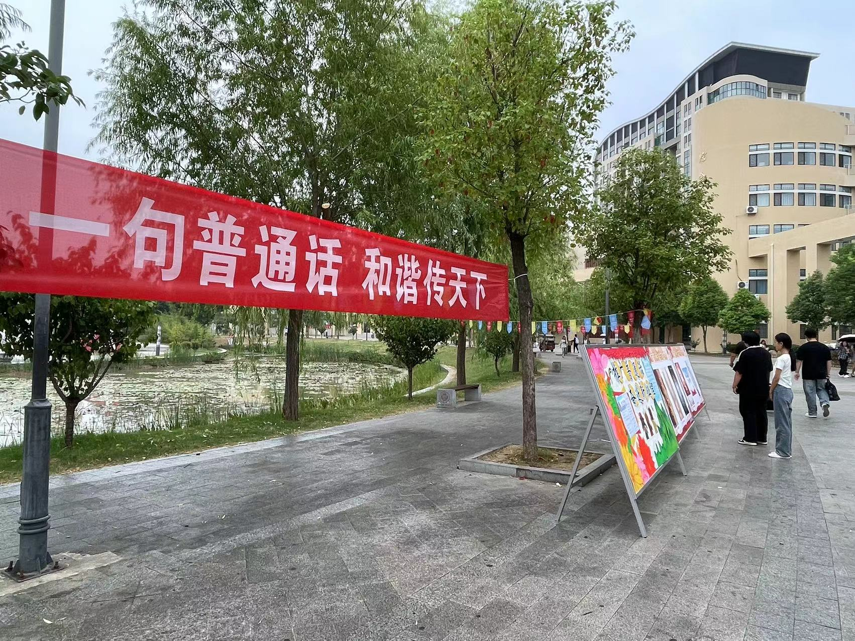 学校制作推普周主题宣传条幅,并将主题海报设计大赛中的优秀作品制成宣传面板。同时,组织志愿者现场宣传推广普通话宣传周相关知识,吸引了众多同学观看,在学生社区营造了浓厚的推普宣传氛围。