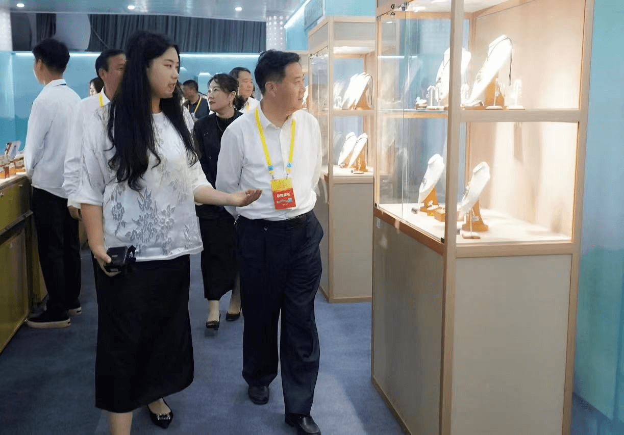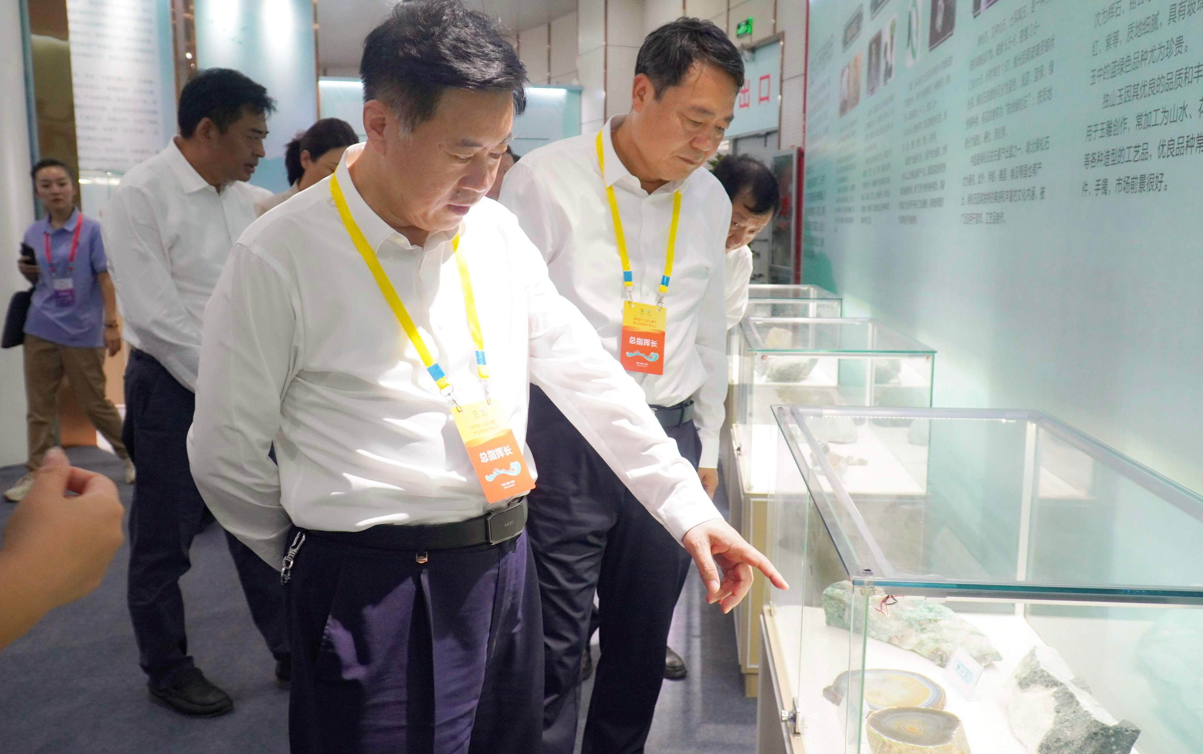 王智慧、路红卫一行先后对宝玉石矿石标本展览室、师生作品展区、大师作品展区及珠宝镶嵌实训基地等区域进行参观并认真听取讲解员讲解。一件件美轮美奂的作品,作为南阳工艺美院发展成果的同时,也是南阳地区工艺美术产业繁荣发展的缩影。 据悉,此次玉雕节暨文化创意产业大会期间,展览馆将面向全社会开放参观,这无疑是对我校职业教育成果的一次检验。未来我校将以此为契机,继续努力创作更多优秀的工艺美术作品,为传承和发展南阳玉文化产业贡献自己的力量。同时,加强与企业的合作与交流,推动产学研深度融合,为地方经济发展和文化繁荣做出更大的贡献。