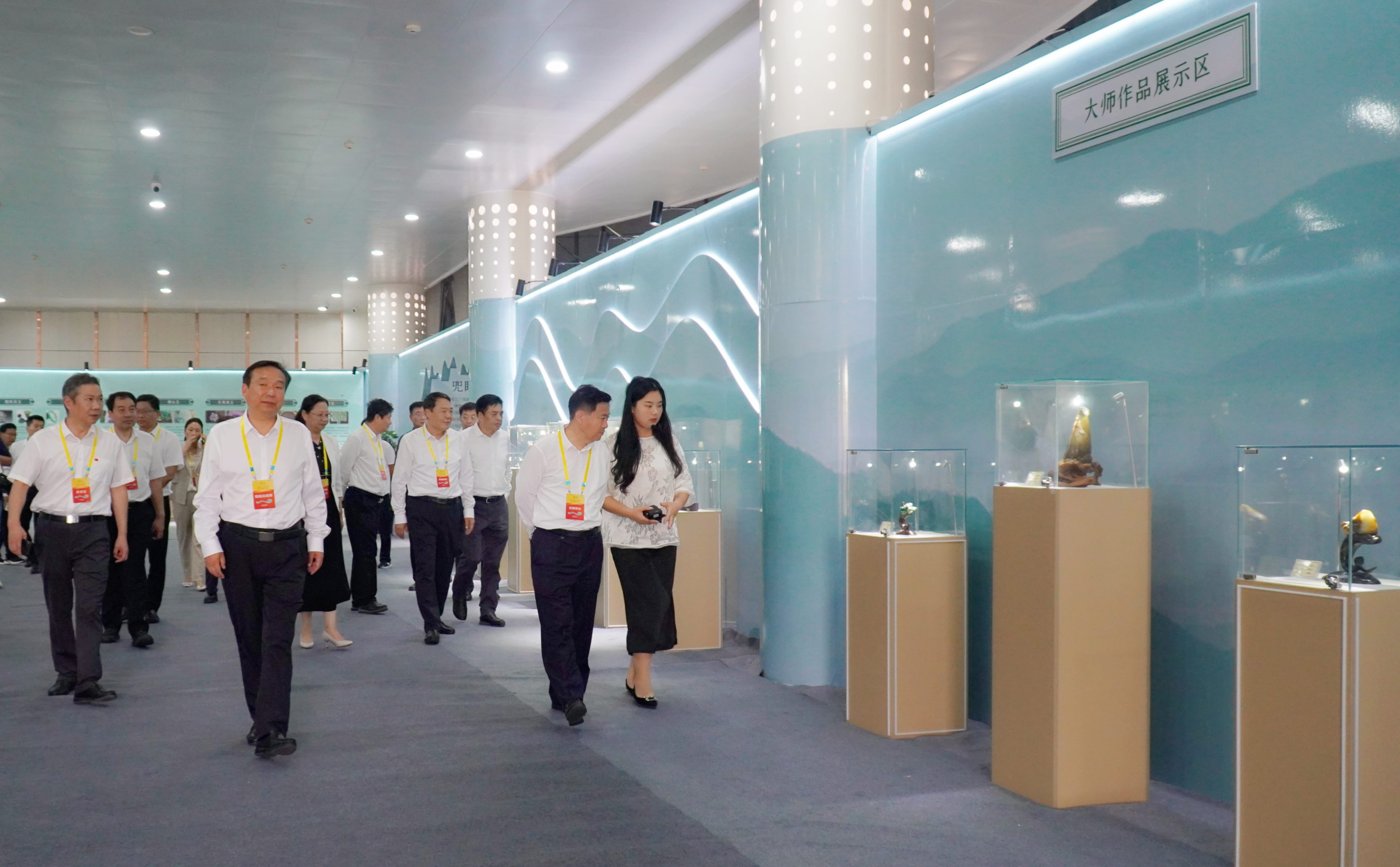 9月28日上午,南阳第十九届玉雕节暨文化创意产业大会在镇平县开幕。南阳市委书记王智慧,市委副书记、市长路红卫及市直相关单位领导一行来到南阳工艺美院展览馆参观。镇平县委书记艾进德,县委副书记、县长黄静,南阳工艺美术职业学院党委书记赵毅辉,校长胡楠等领导陪同参观。