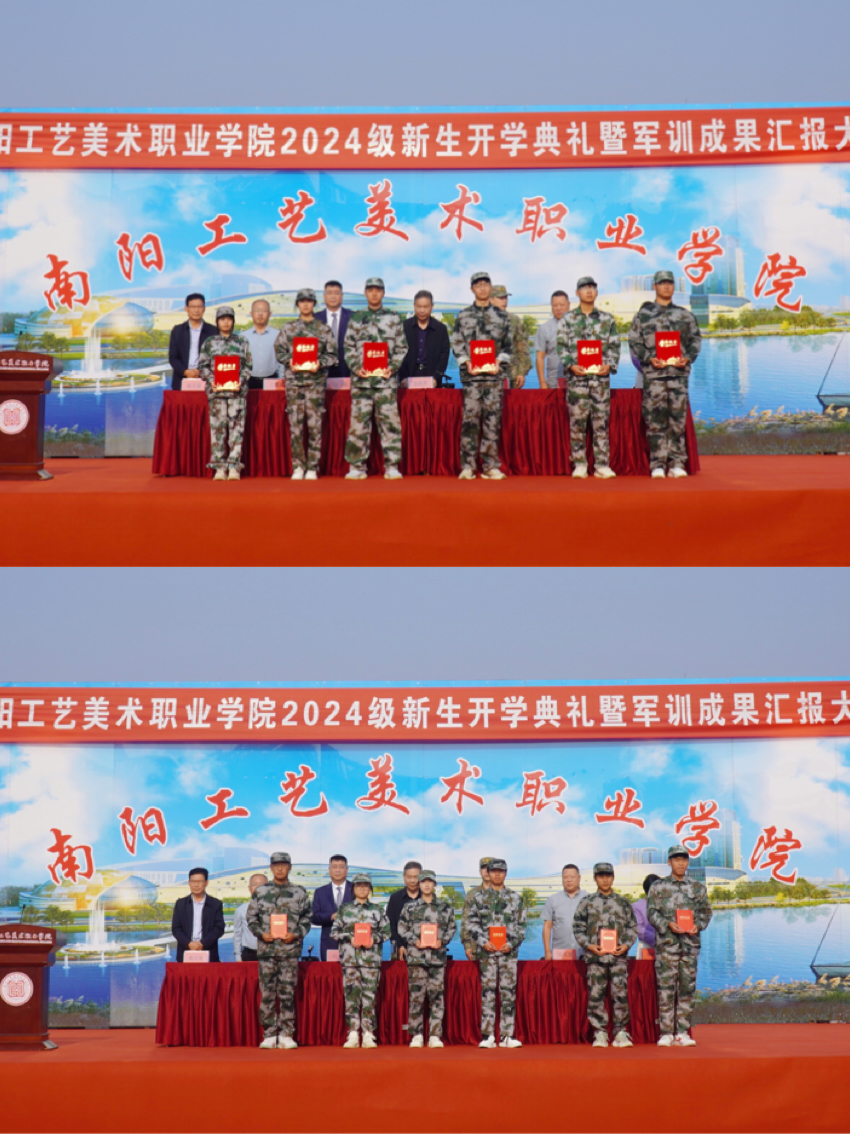 表演结束后,副校长王道明宣读了军训会操先进集体和个人的表彰决定,并进行了颁奖仪式。现代技术学院荣获优秀集体一等奖,珠宝玉雕学院、产品设计学院获得二等奖,商学院、造型艺术学院、人文艺术学院获得三等奖。同时,韩子涵、黄金豪等282位新生被授予“优秀训练标兵”称号。