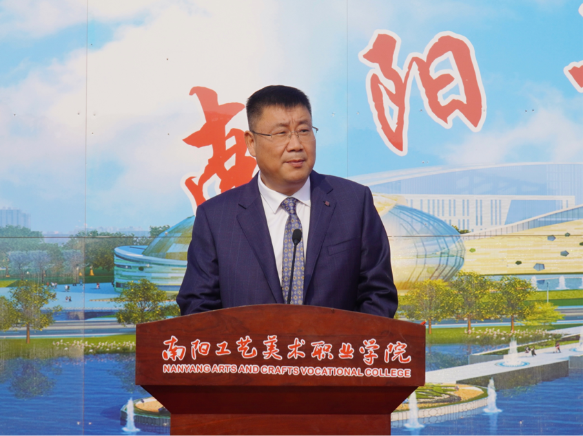 晨光初破,大会在庄严的国歌声中拉开序幕。镇平县武装部部长刘建伟,南阳工艺美术职业学院校长胡楠,校纪委书记辛玉建,副校长王道明,副校长李艳丹,以及原镇平县工艺美术中等职业学校校长秦英翔出席本次活动。大会由镇平县委常委、校党委书记赵毅辉主持。