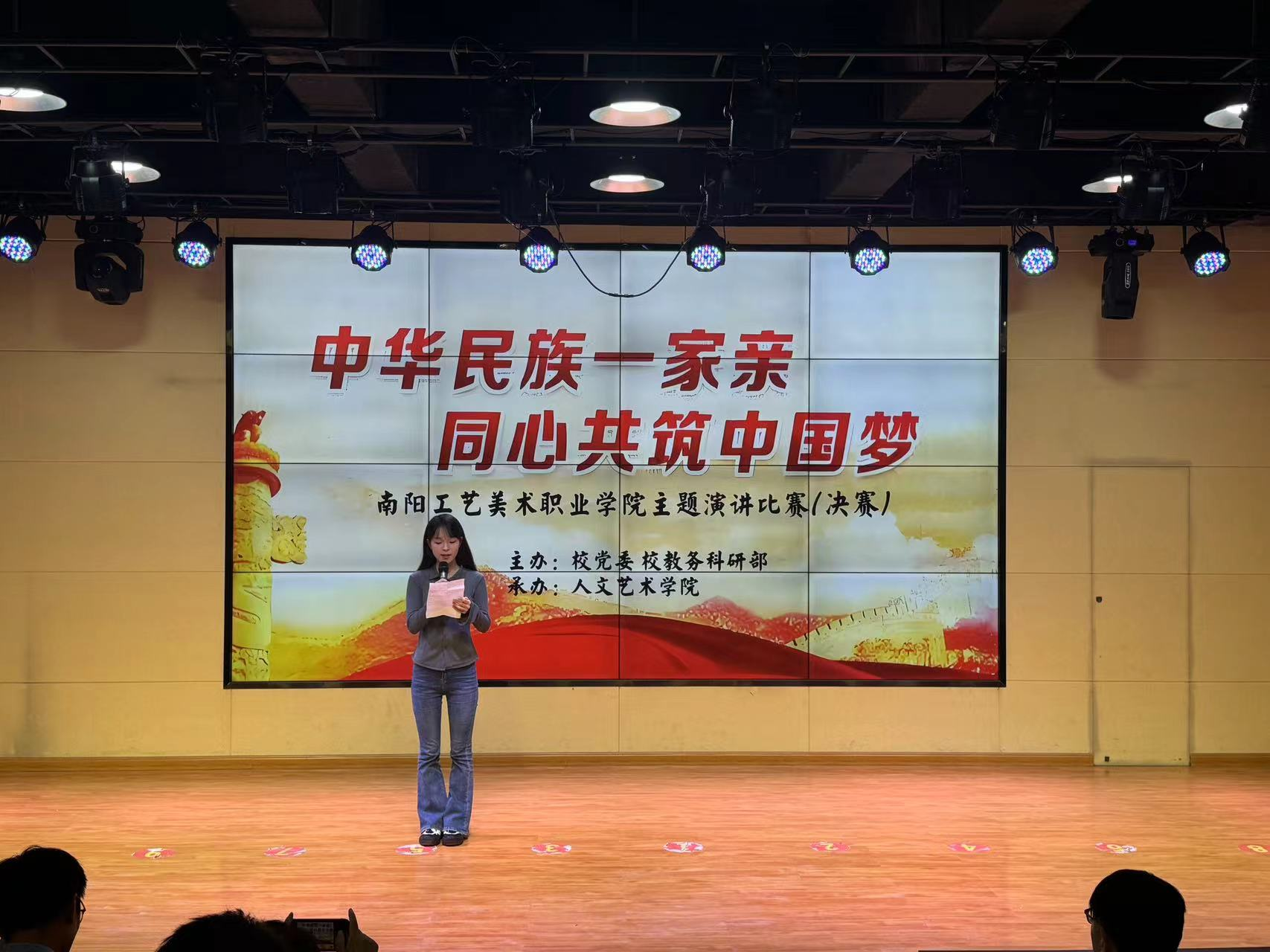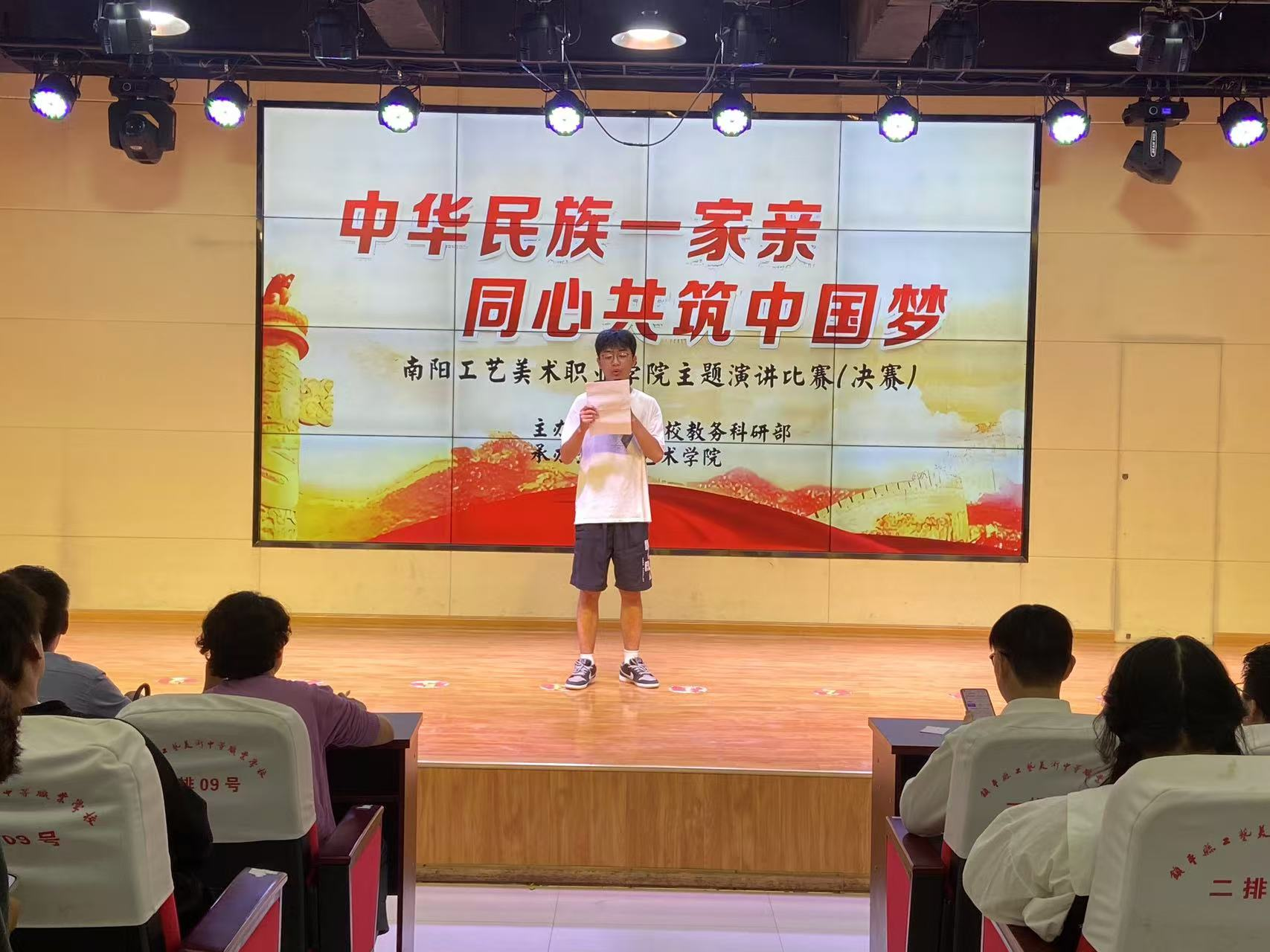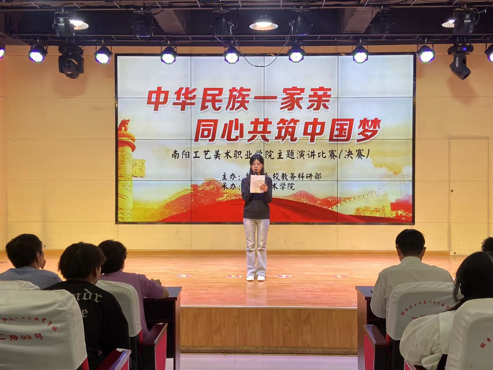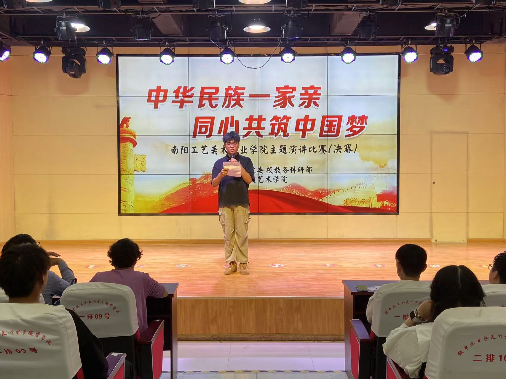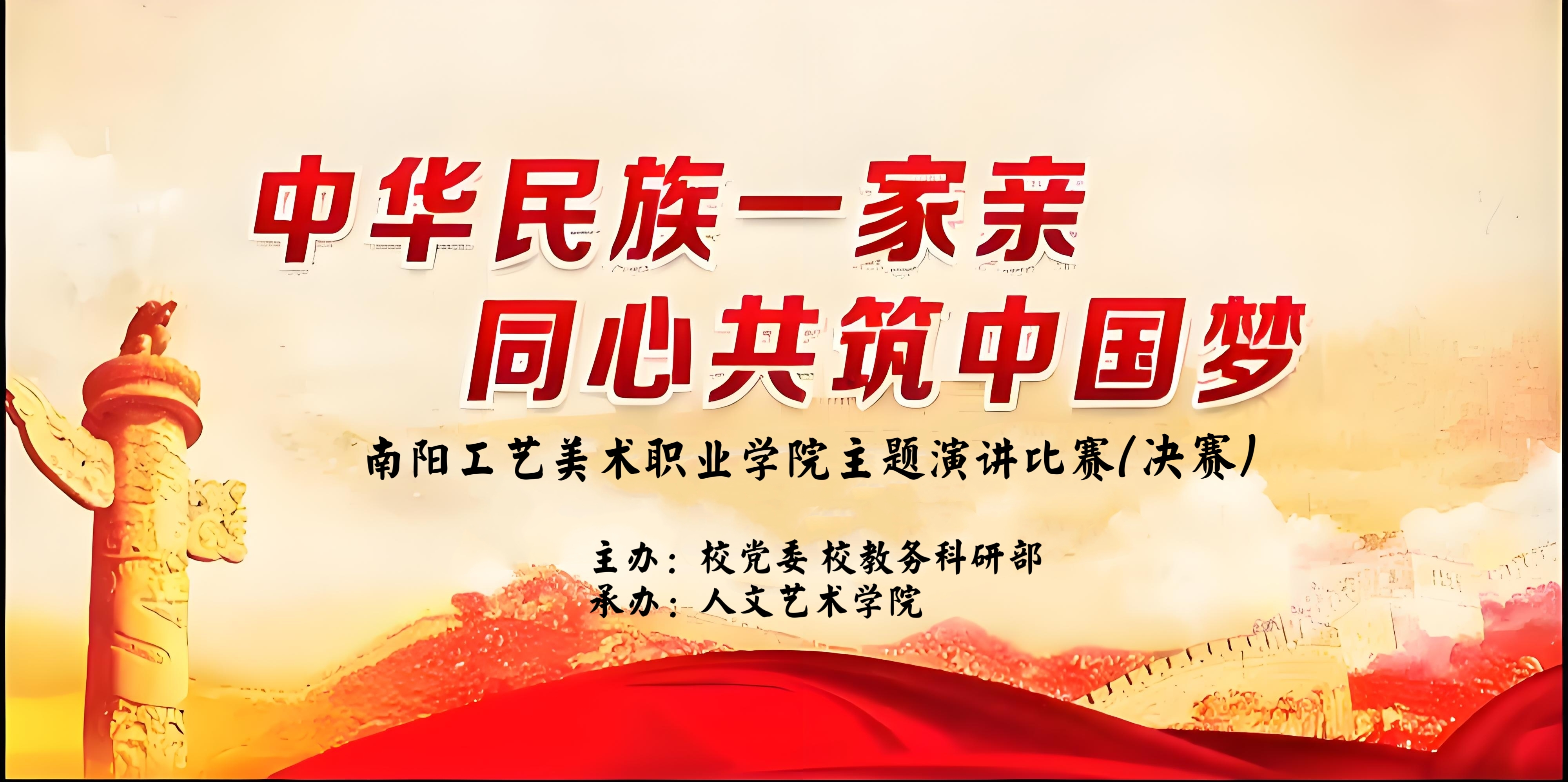 本次演讲比赛旨在通过演讲这一形式,鼓励广大学子深入学习和理解民族工作会议精神,增强民族团结意识,促进不同民族之间的交流与融合,共同为实现中华民族伟大复兴的中国梦贡献青春力量。 决赛现场,经过各学院层层选拔脱颖而出的参赛选手们紧紧围绕“中华民族一家亲,同心共筑中国梦”的主题,将各民族精神内涵同中华民族伟大复兴的中国梦相结合,或慷慨激昂、或铿锵有力、或娓娓道来。从身边人、身边事,多方面、多角度地诠释了他们对“铸牢中华民族共同体意识”的深刻认识,充分阐述了民族团结的重要意义,号召人们为实现中国梦而奋斗。同时也展现出新时代青年大学生激情洋溢的爱国热情和昂扬向上的文化自信,以及他们为实现中华民族伟大复兴中国梦而努力奋斗的坚定信念。现场精彩纷呈,高潮不断。 经过评委老师们的认真评选,最后评选出一等奖一名,二等奖两名,三等奖四名,并公布表彰,为活动画上圆满的句号。 此次演讲比赛表现了南阳美院青年学子对民族团结的深刻理解和对民族复兴的责任担当。选手们饱含深情的表达、铿锵有力的话语,充分体现了青年人奋发向上、积极进取的精神风貌。他们用坚定的声音展现着青年一代的蓬勃生机,诠释着维护民族团结、实现伟大复兴的决心与信心。