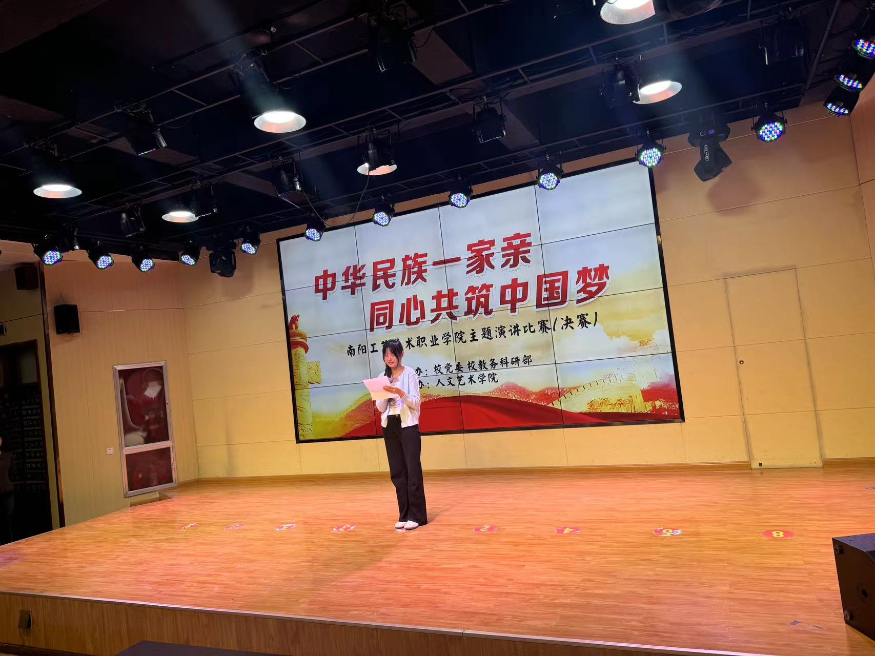 为深入学习贯彻习近平新时代中国特色社会主义思想和党的二十大、二十届三中全会精神,宣传贯彻中央、省委民族工作会议精神,推进高校铸牢中华民族共同体意识工作,10月9日晚上,南阳工艺美术职业学院于二号教学楼一楼阶梯教室举办“中华民族一家亲,同心共筑中国梦”主题演讲比赛决赛。本次活动由校党委发起,校教务科研部组织。