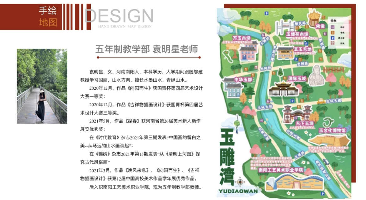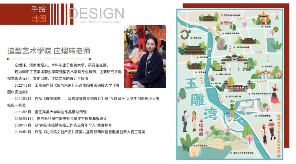 “玉雕湾”作为南阳地区独具特色的文化地标,承载着丰富的历史文化和艺术价值。本次手绘地图活动旨在激发师生的创造力和对本土文化的热爱,同时提高师生的专业技能。