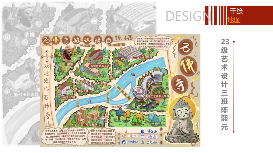 这些手绘地图不仅展现了师生扎实的绘画功底和创新思维,更将“玉雕湾”的独特魅力展现得淋漓尽致。每一幅作品都仿佛一个灵动的故事,带领观众走进玉雕湾的历史与文化。