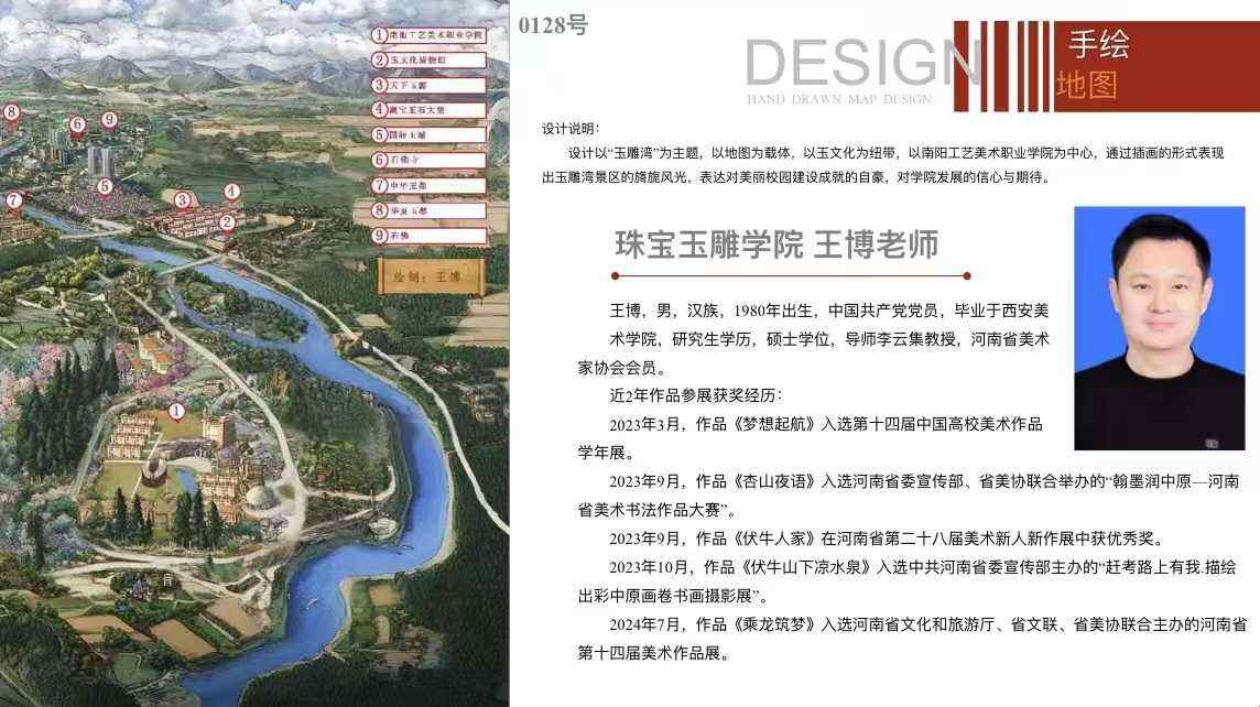 2024年9月,南阳工艺美术职业学院产品设计学院开展了美院画卷系列活动之“玉雕湾”手绘地图大赛,此次活动吸引了众多师生及业内人士的关注,经过层层选拔,出现了一批极具艺术性及代表性的作品,也以此为契机,展现了学院师生的专业技术能力。