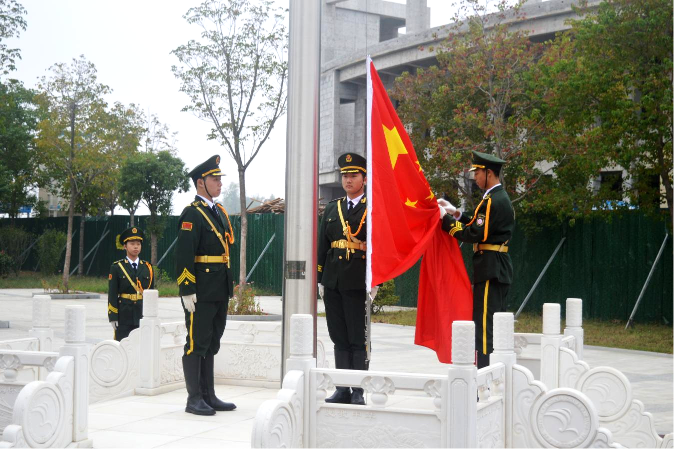 国旗班成员英姿飒爽,迈着整齐而有力的步伐护送国旗稳步走向升旗台。在激昂澎湃的国歌声中,鲜艳的五星红旗徐徐升起,全体师生肃立注目,以庄重的姿态共同表达对伟大祖国的无限热爱与崇高敬意。