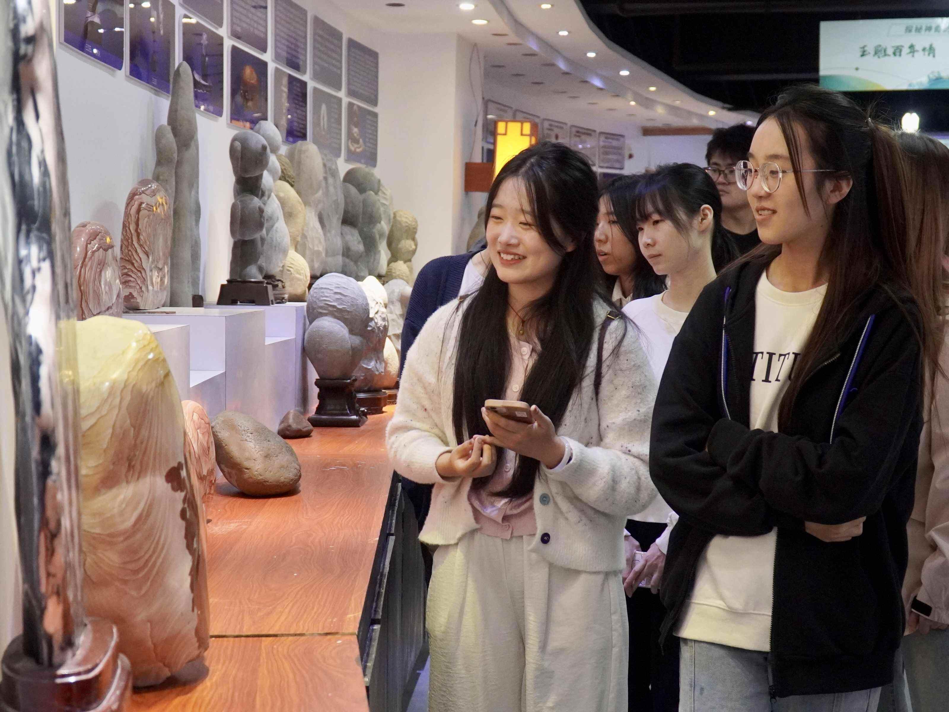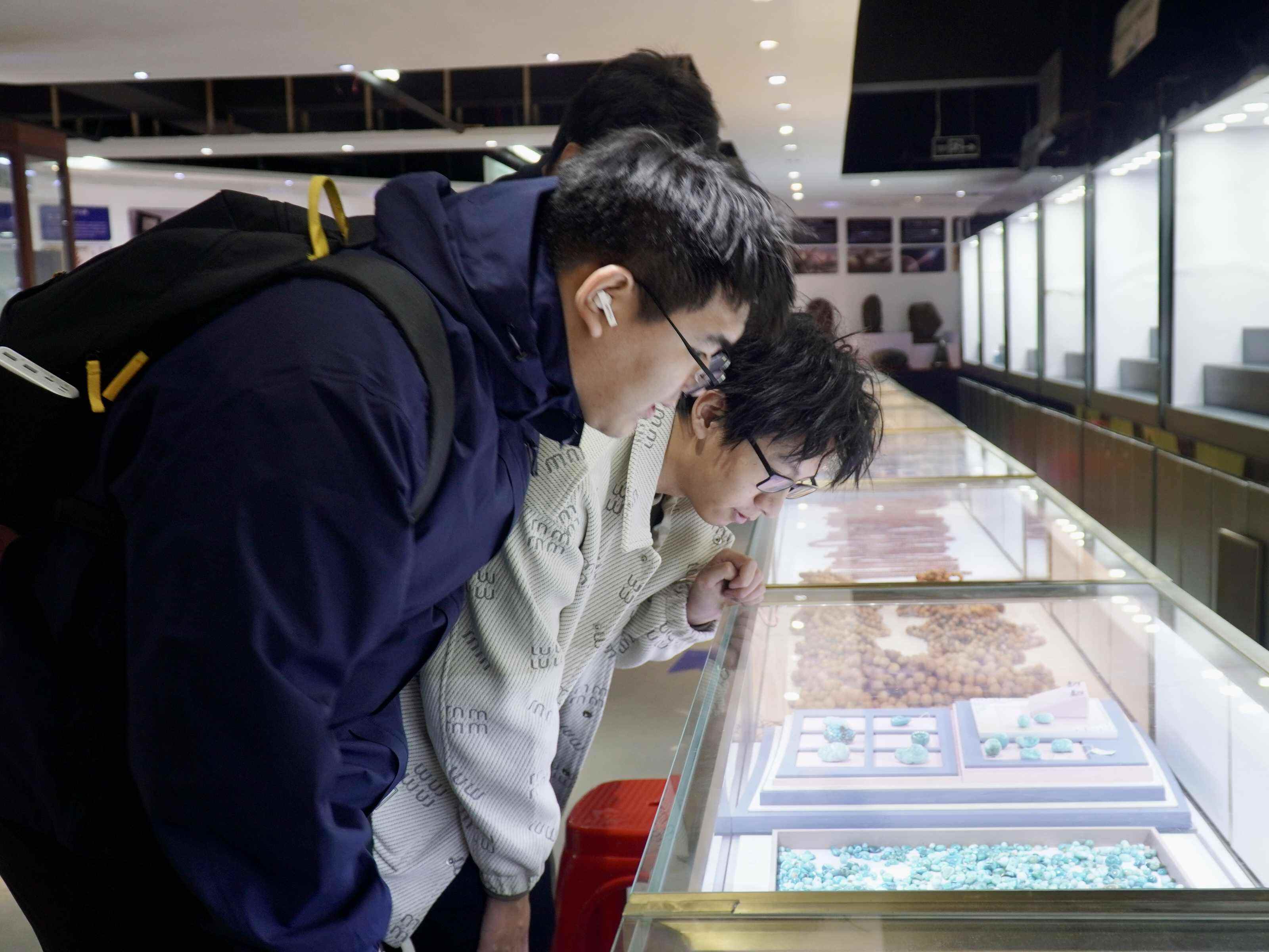来访师生们参观了我校玉雕工作车间、工艺美院展览馆及矿晶宝石展览馆等教学场所。参观过程中,庄绍白副秘书长和蔡雯佳主任不时与学生们交流心得,鼓励他们努力学习专业知识,为未来的宝玉石行业贡献自己的力量。学子们仔细聆听讲解,积极提问,展现出了浓厚的专业兴趣和强烈的求知欲。