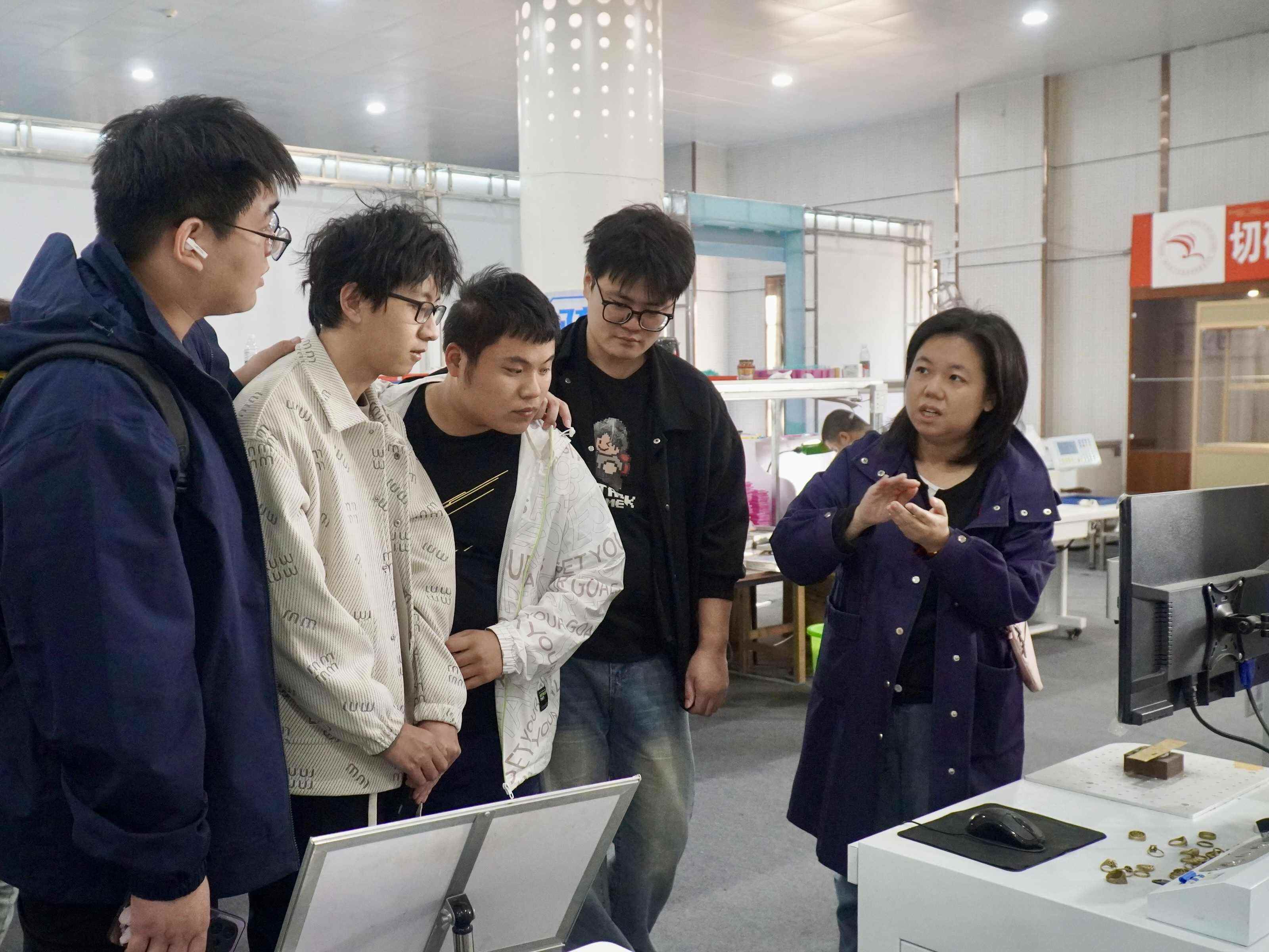 10月24号,上海宝玉石行业协会副秘书长庄绍白、上海工艺美术职业学院宝玉石鉴定与加工专业主任蔡雯佳,带领12名学生走进我校,进行参观考察。校领导秦英翔,教务科研部刘河源老师等陪同参观。