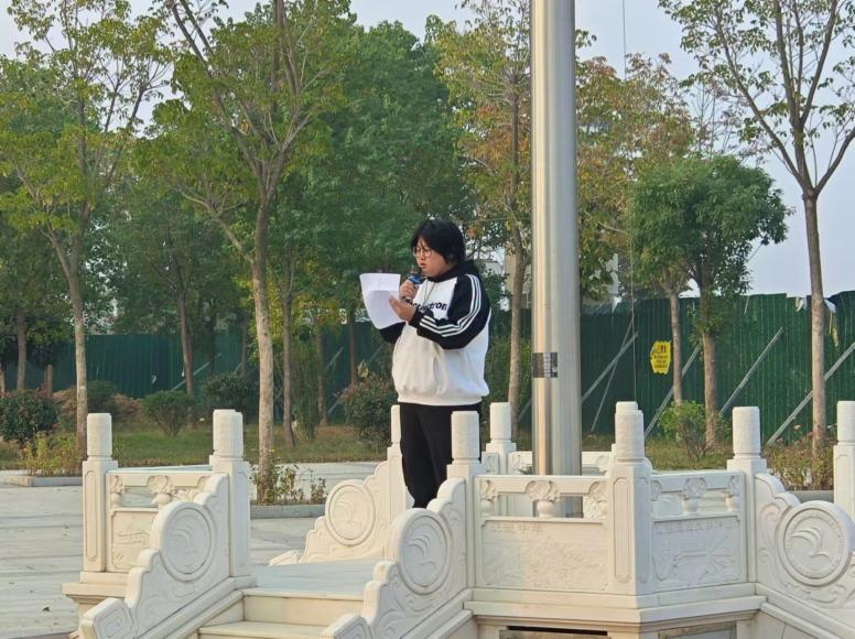 中专学生代表曹爽讲到:“作为新时代的青少年,我们肩负着实现中华民族伟大复兴的重任。应当从身边的小事做起,认真学习,养成良好的习惯,以实际行动为祖国的繁荣富强贡献自己的力量。”