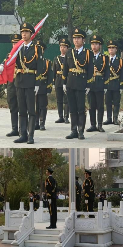 国旗护卫队,一群充满使命感的热血青年,他们即将履行那无比荣耀的任务。他们身姿矫健,步伐整齐划一,每一个动作都饱含着对国旗的敬重。他们像训练有素的士兵,以钢铁般的意志和纪律,护卫着国旗迈向升旗台。这坚定的步伐,是对国旗尊严的捍卫,也承载着全体师生对伟大祖国的热爱。