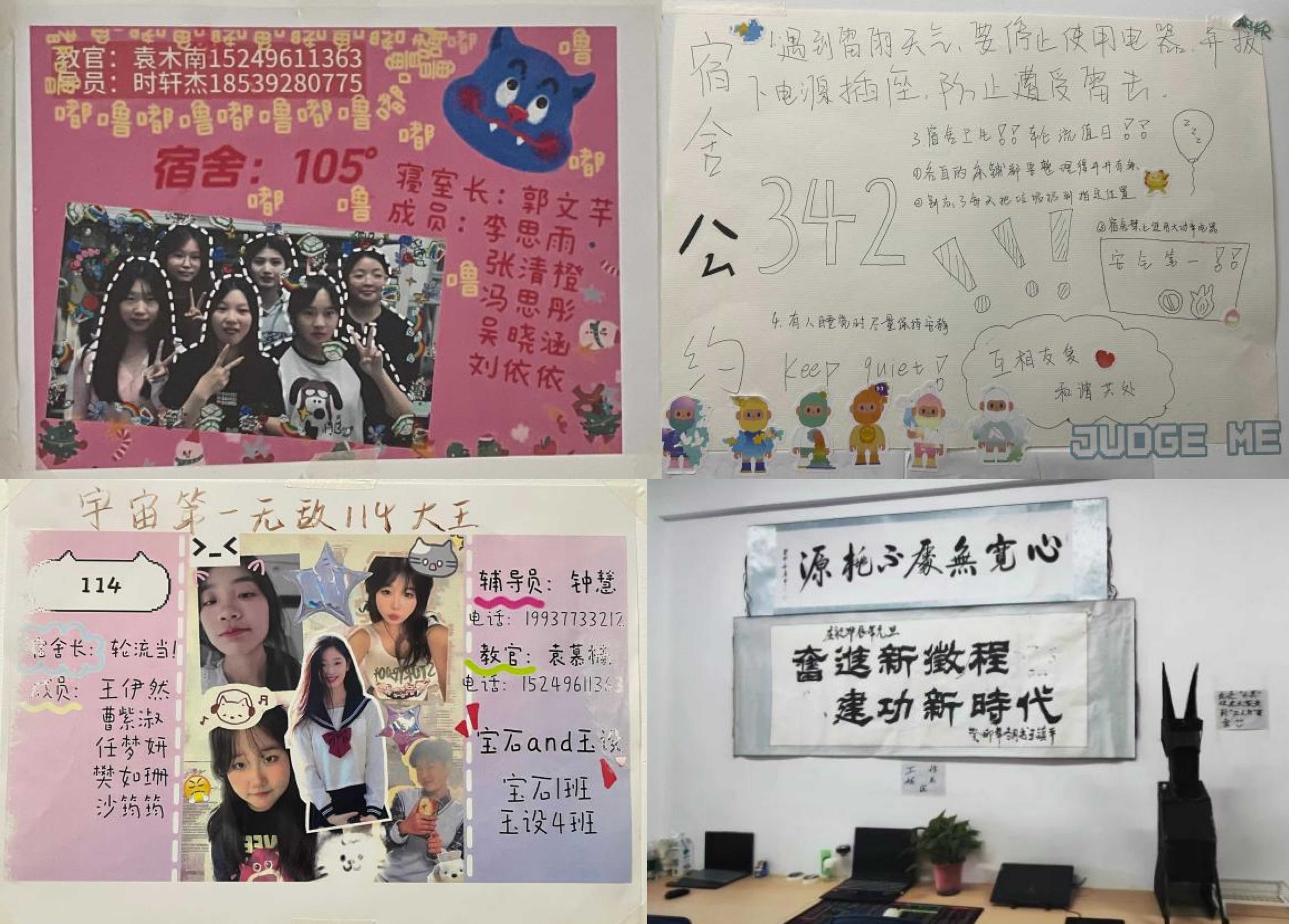 宿舍文化方面,同学们用创意和个性装饰宿舍,制作了精美的门牌、文化背景墙,制定了宿舍公约等,丰富了课余生活,展现了积极向上的宿舍文化和创新能力。