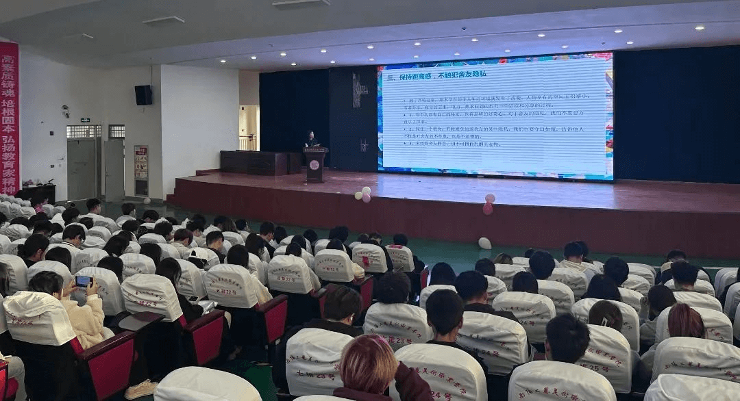 “心随室净,梦随心启”,这不仅是宣传标语,也是大学生宿舍生活的真实写照。李军老师以其生动活泼的演讲风格,如同一位引领者,带同学们穿梭于宿舍生活的点滴细节之中,探索构建心灵港湾的奥秘。此次讲座不仅是一场关于如何经营大学生宿舍生活的知识分享,更是一次心灵的洗礼。鼓励着同学们携手并进,在南阳工艺美术职业学院这片热土上,共同打造温馨快乐的大学生活。