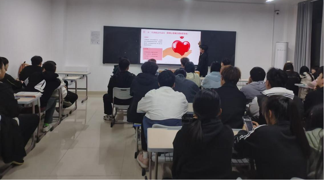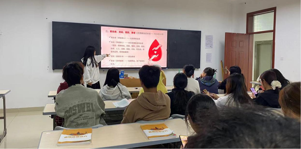 除了现场无偿献血活动,南阳工艺美术职业学院还组织了以无偿献血为主题的教育活动。活动的开展充分利用教育途径弘扬正能量,引导新风尚。由班长担当献血知识讲解员,以班级为单位开展主题班会,增强学生对无偿献血重要性的认识,提醒献血后的注意事项。
