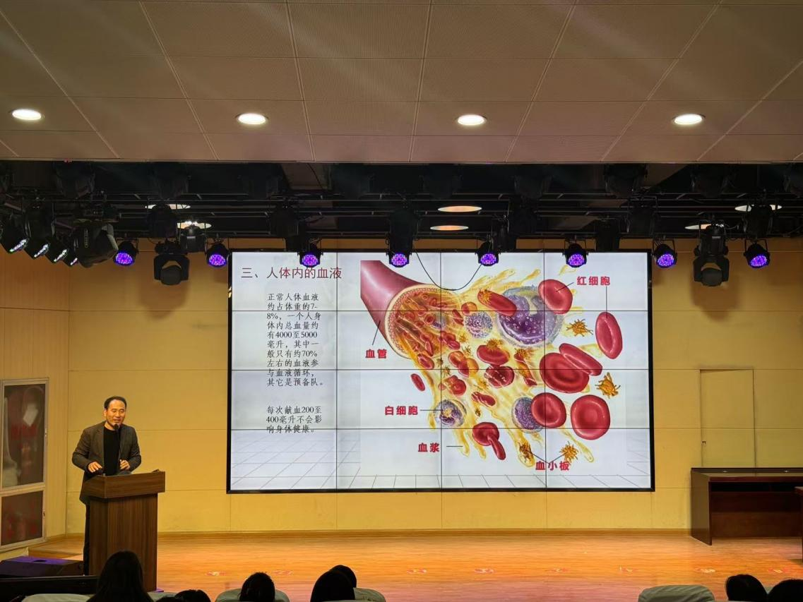 南阳市中心血站副站长韩金威在讲座中充分讲解了献血的原因、献血的本质、献血的实际意义、献血的益处、献血的要求、怎样参加无偿献血等内容。