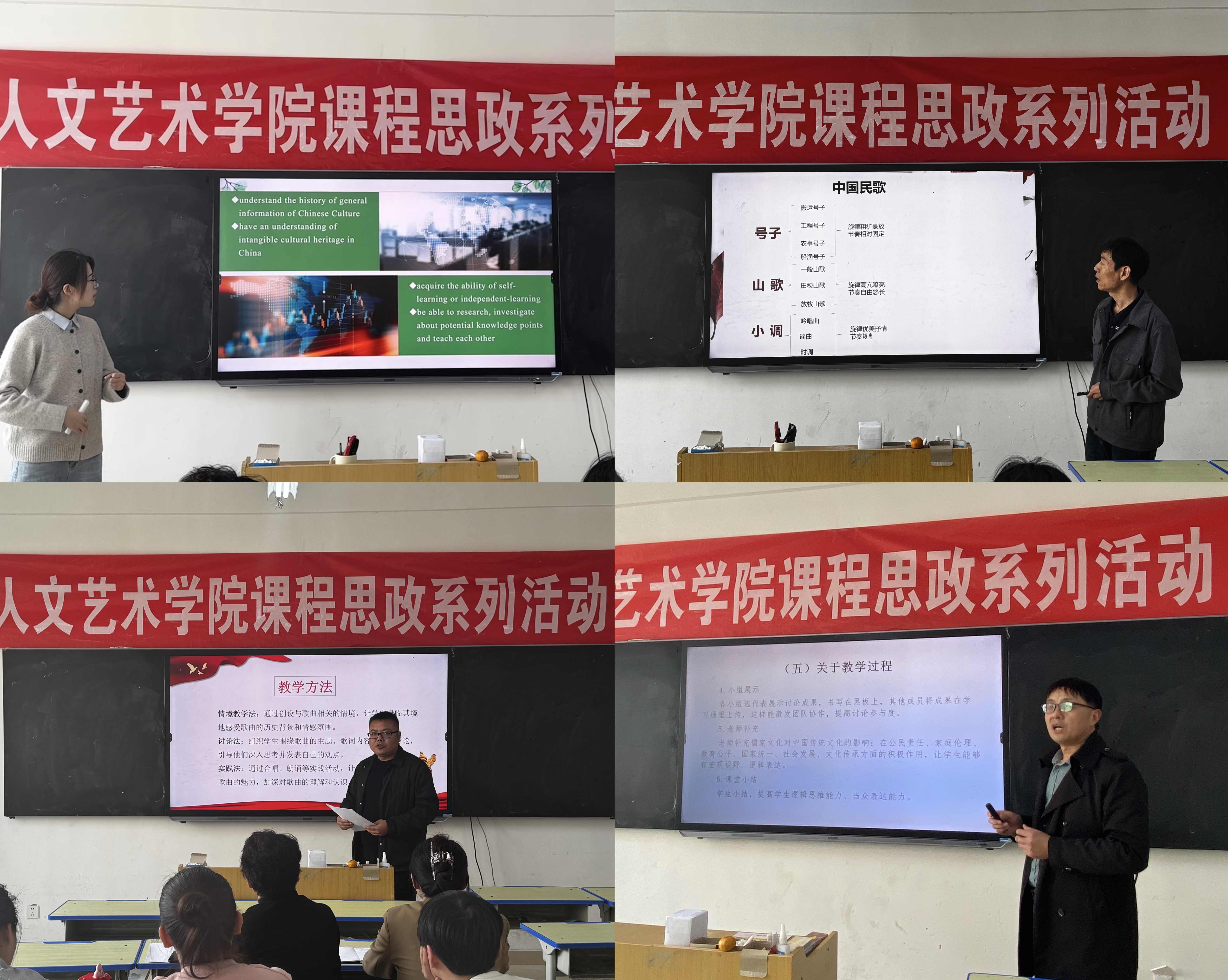 为深入贯彻落实习近平总书记关于教育的重要论述,全面推进课程思政建设,将思想政治教育贯穿人才培养体系,发挥好每门课程的育人作用,提高教师课程思政教学能力,提升人才培养质量,人文艺术学院于10月期间开展“立德树人,思政铸魂”主题课程思政系列活动。本次活动形式多样,视角多元,涵盖学院全体教师,极大程度上加深了教师们对于课程思政丰富内涵的进一步理解。