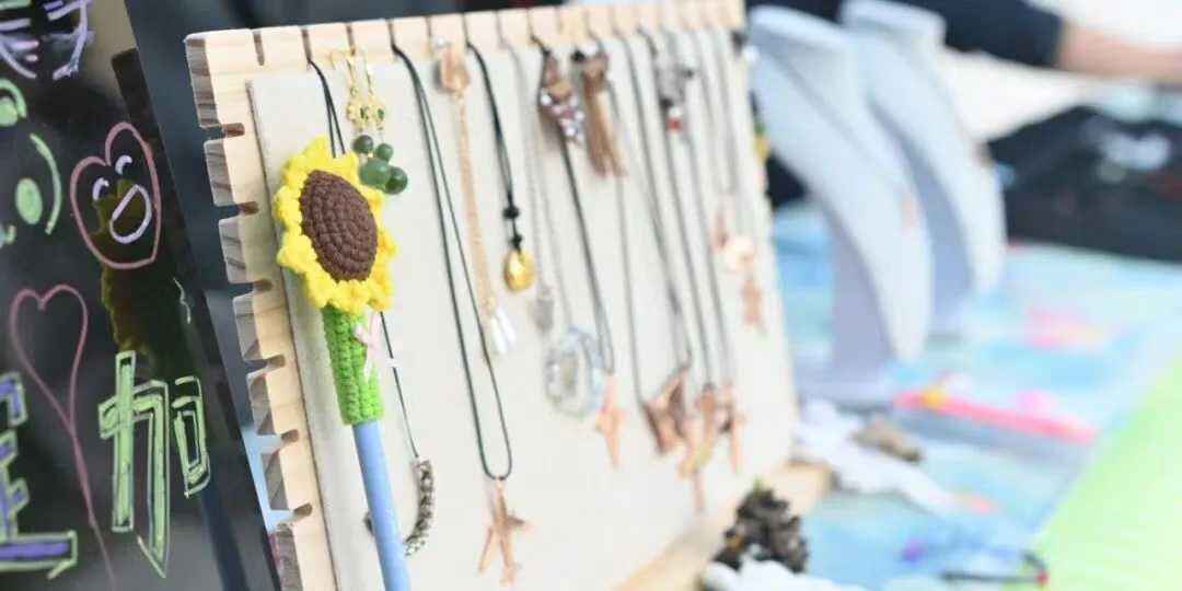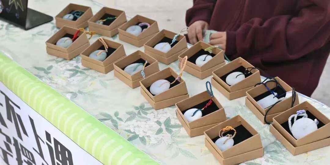 此次“淘宝市集”活动汇聚了玉器设计与工艺、宝玉石鉴定与加工两个专业、不同年级的学生摊主,他们怀揣着饱满的热情,将平安扣、无事牌、贵金属首饰等实训成果摆放整齐、一一呈现,为大家提供了丰富多样的购买选择。
