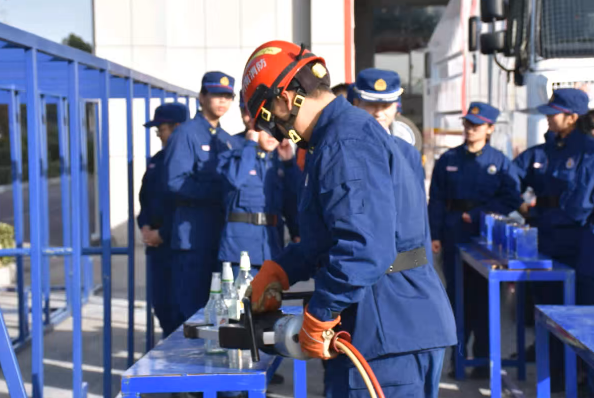 接着,由两名消防员为大家演示应急救援所需的技术要求,他们用实际操作告诉我们消防救援的不易,用无齿锯切割灯泡上的钢丝,用沉重的手动扩钳移动易碎的玻璃瓶,展现出了他们精湛的技术。演示完毕,消防员们耐心的解答了同学们的疑问,并让学生们上手实操,进一步增强了同学们的实际操作能力。