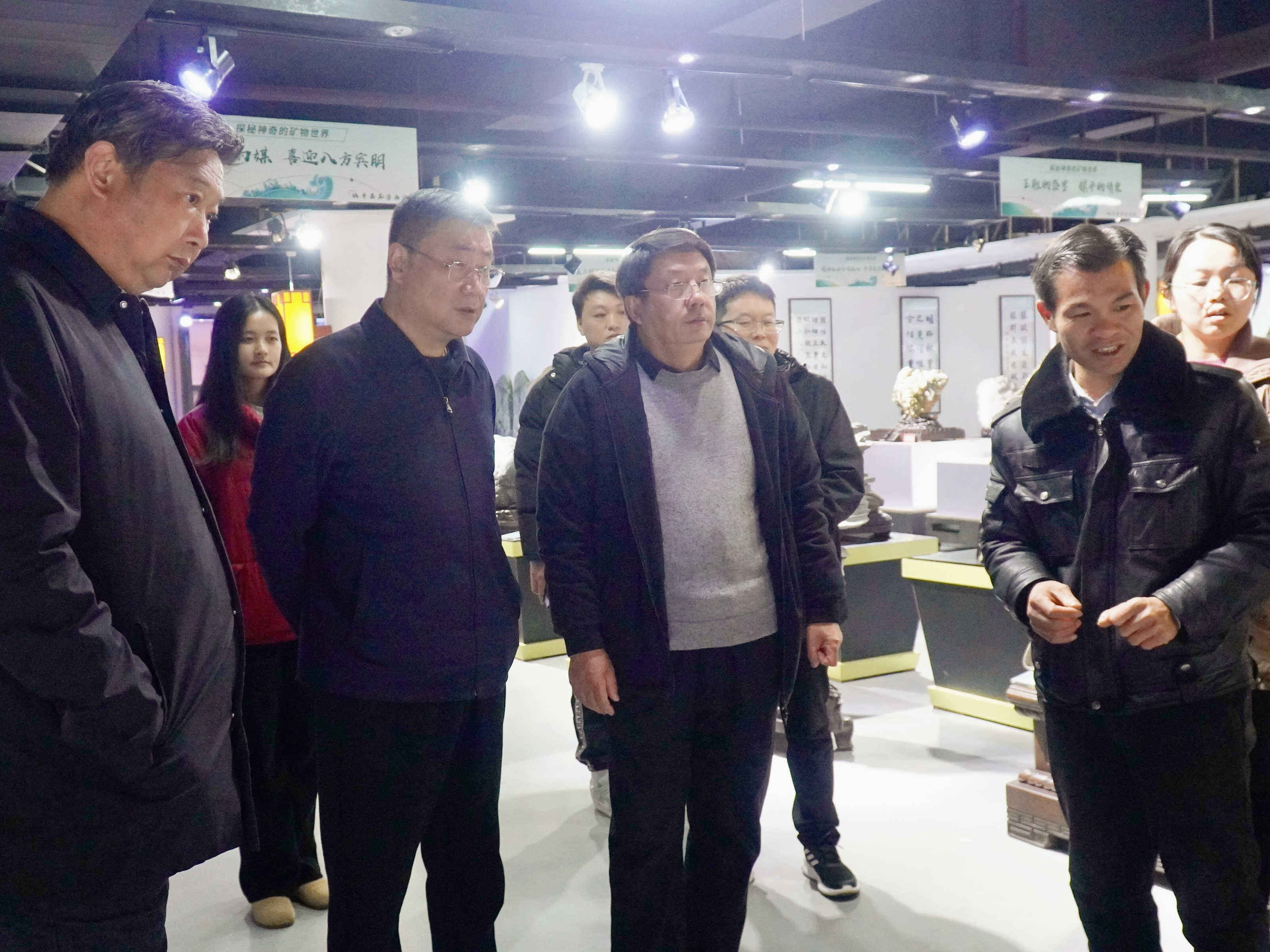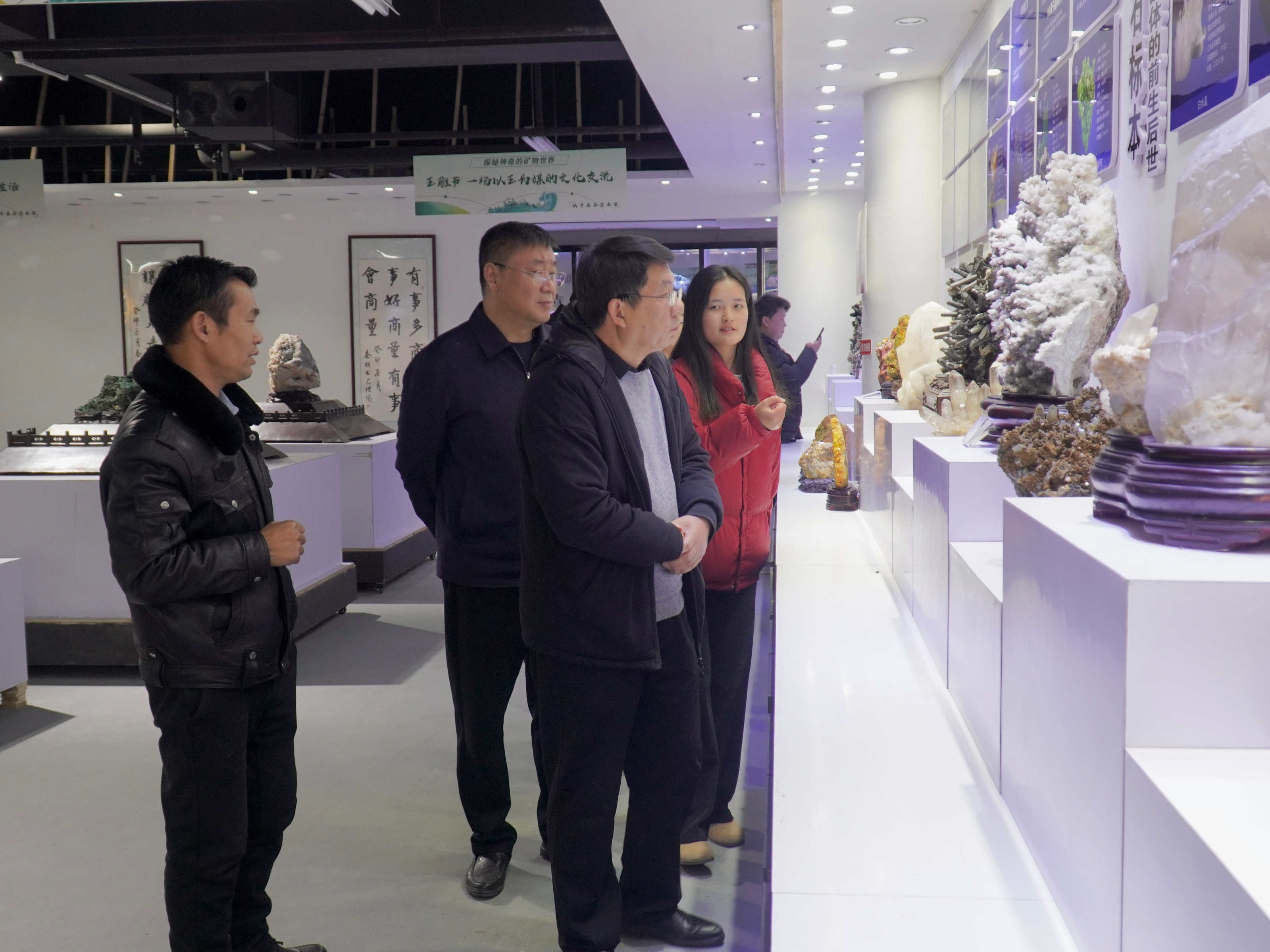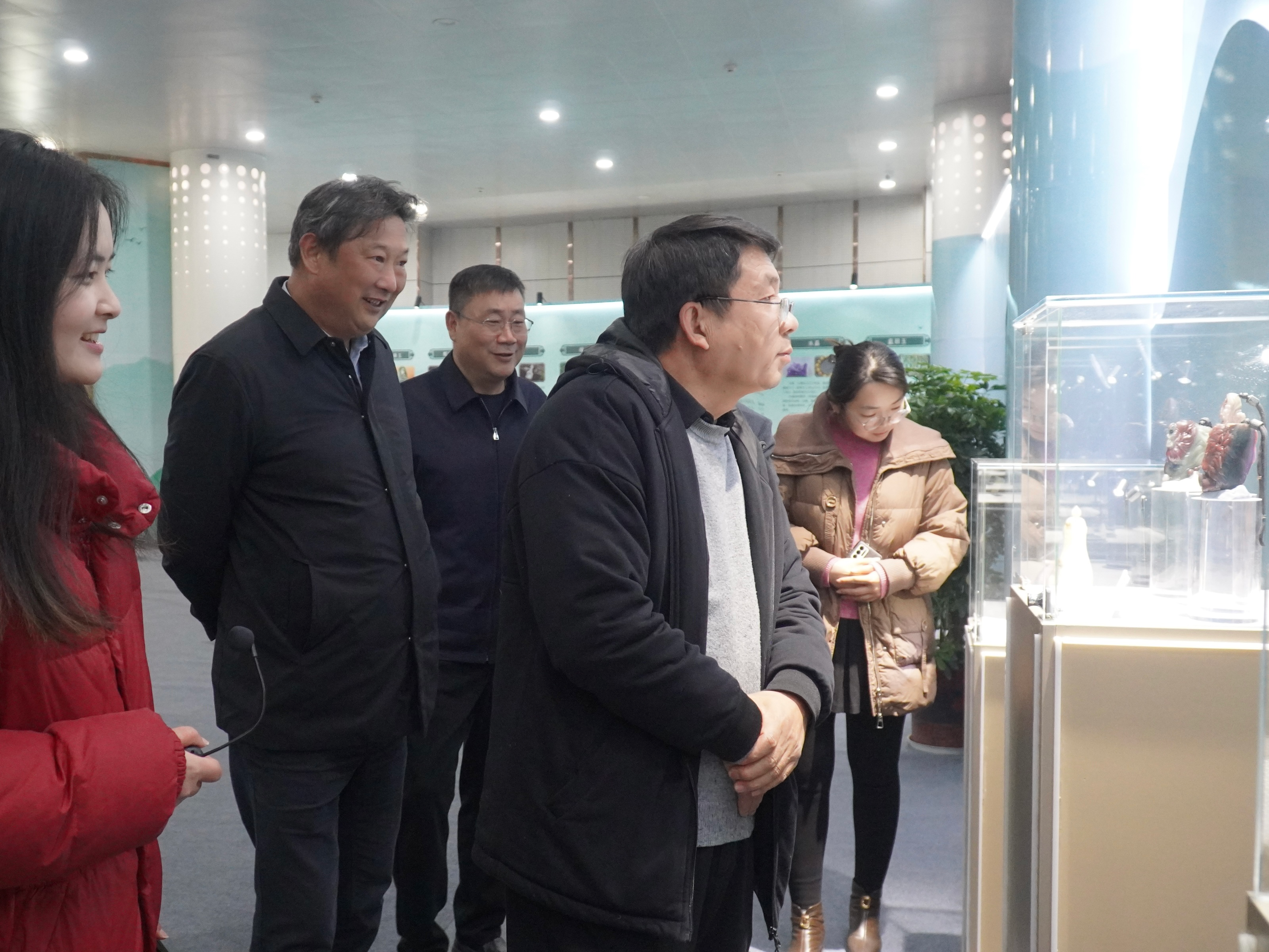座谈会后,郭书贤书记一行在胡楠校长等校领导的陪同下,参观了我校矿晶展览馆和工艺美院展览馆。考察团一行对我校在工艺美术、宝玉石雕刻鉴定等领域的专业特色和优势给予了高度肯定。