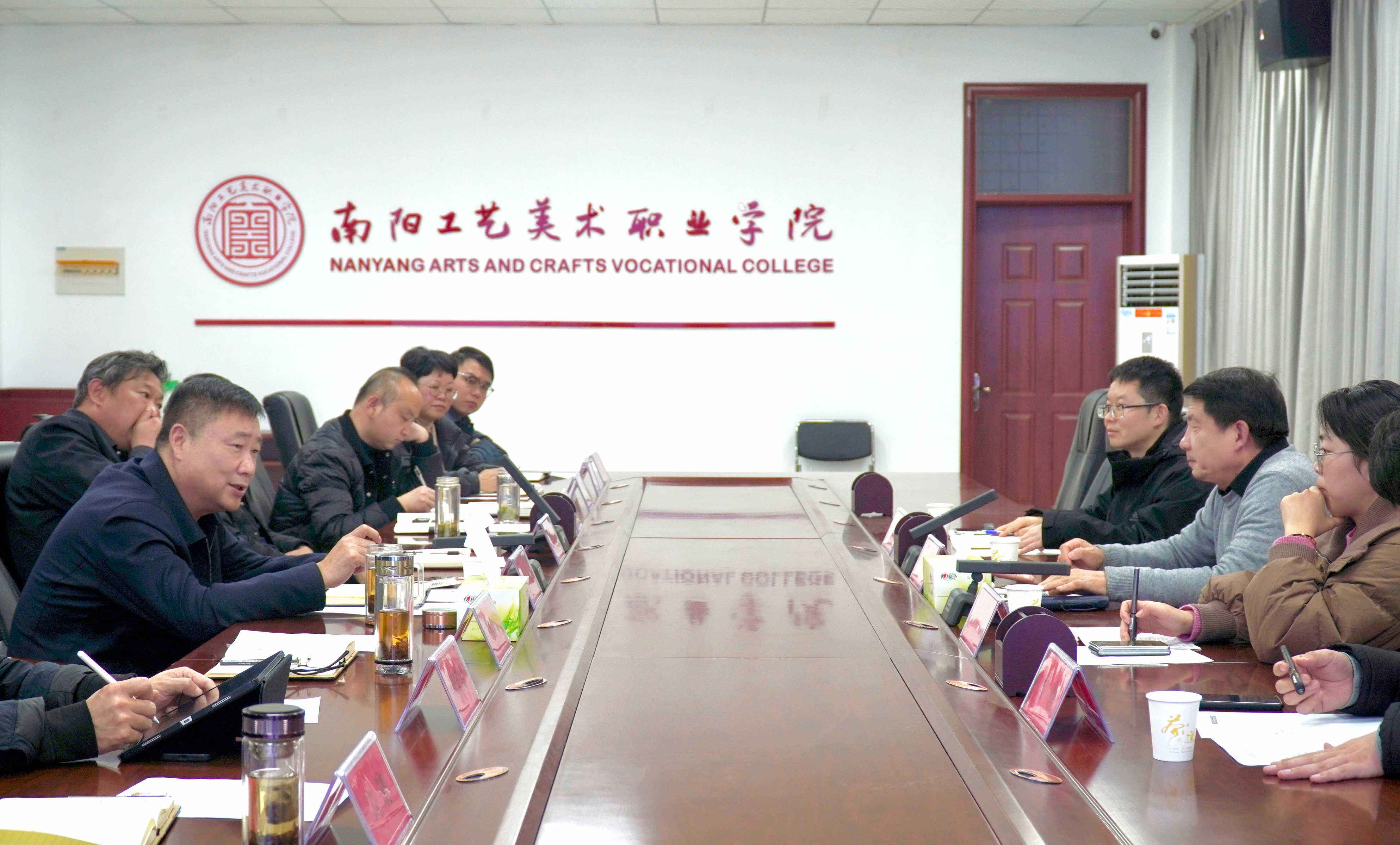 郭书贤书记对南阳工艺美术职业学院的发展现状及规划给予了高度评价。随后,郭书记简要介绍了南阳职业学院的学科建设现状及特色专业集群,并表示双方要把握高职院校优势和县域产业资源优势,寄望两校能够在“十五五”规划的历史机遇和现阶段高职院校招生的关键期,携手并进,共同做好学校规划发展,推动学科建设和人才培养迈向新高度。
