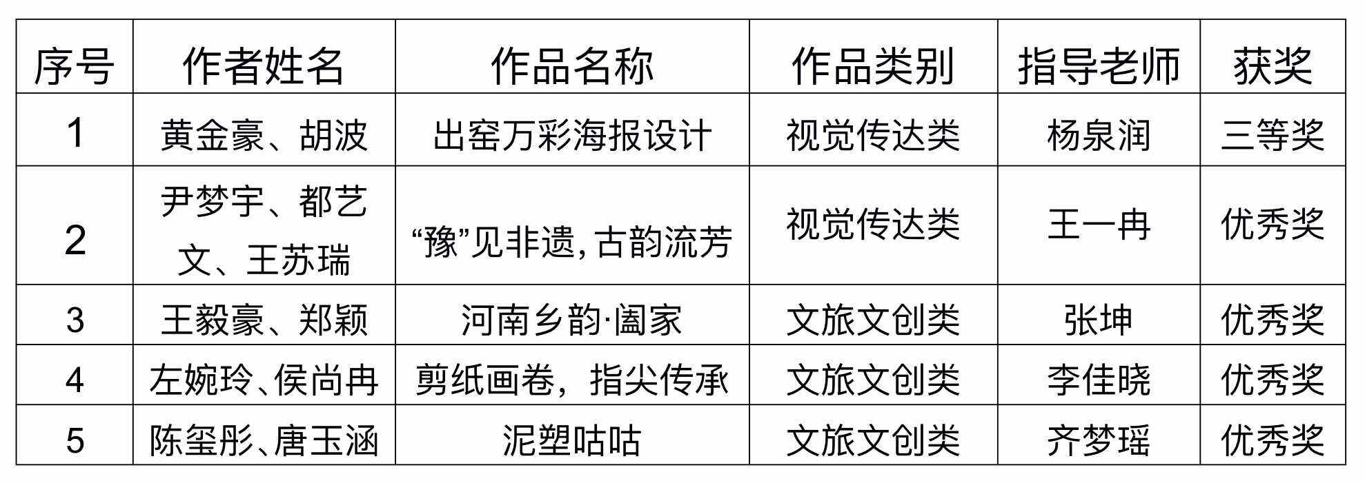 12月18日,河南省教育厅公布了全省高等学校第四届“创意河南”艺术设计大赛评奖结果。我校共有11件师生设计作品荣获奖项,其中教师组获奖6件,学生组获奖5件。此次获奖成果,充分展现了我校师生于艺术设计领域的杰出创意与专业实力,为我校艺术教育增光添彩,同时激励师生勇毅前行,在艺术之路上再谱华章,创作出更多佳作。