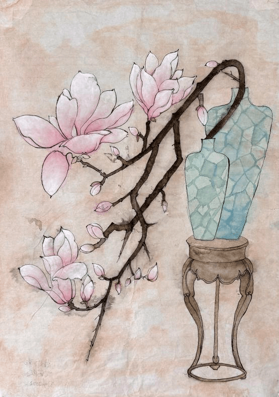 原作解读:这幅作品表达了在冬天里也顽强拼搏的精神,在恶劣环境也能开出花。