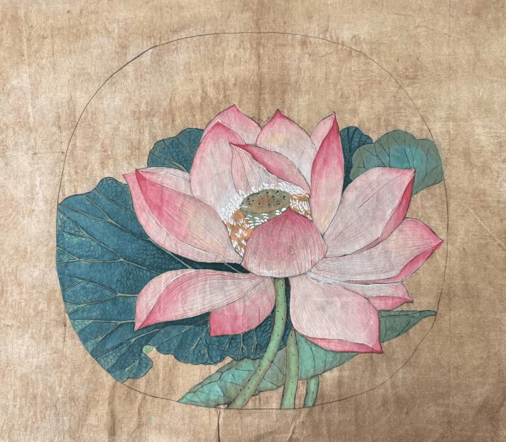 经典赏析:一朵盛开的粉红色荷花占据整个画面,在碧绿的荷叶映衬下抢眼而夺目,布局、设色端庄大气,将荷花“出淤泥而不染,濯清涟而不妖”的君子气质表现得十分完美。