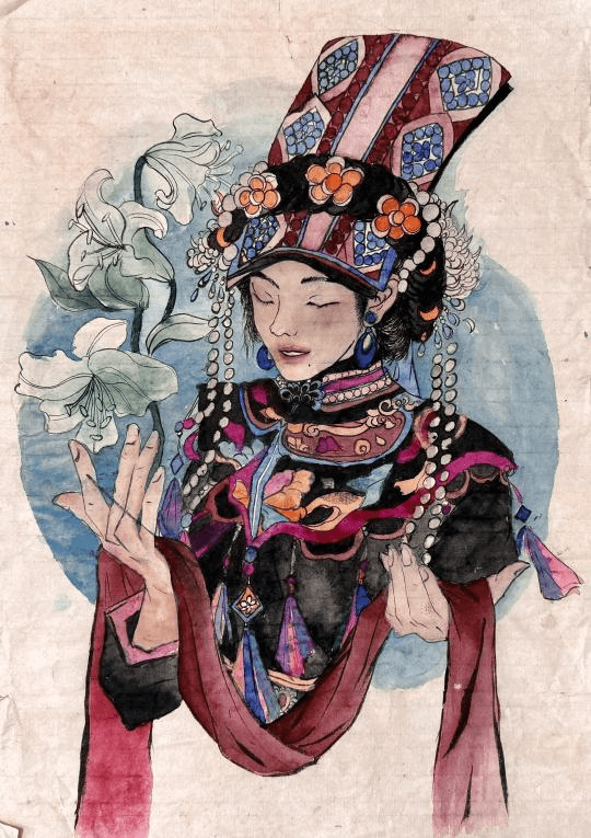 学生心语:头顶瓦,脚踩云。一曲萨朗终,一抹羌扬红。