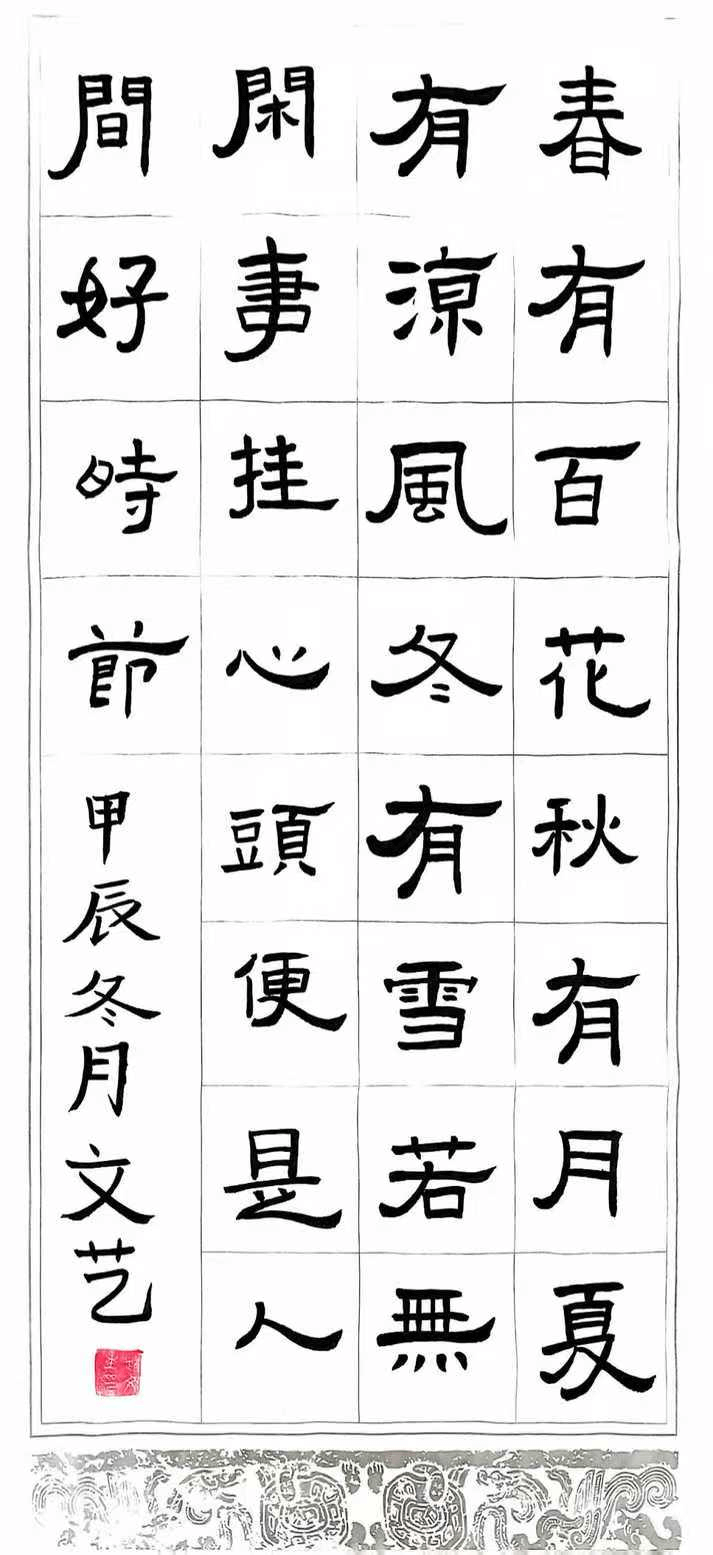 学生心语:书法是展现美、展现精神的窗口,汉字书写中蕴含着中华民族独特的思维方式和审美观念。通过书写领会汉字之美、文化之美,不仅与个人爱好相关,更是文化自信的表现。