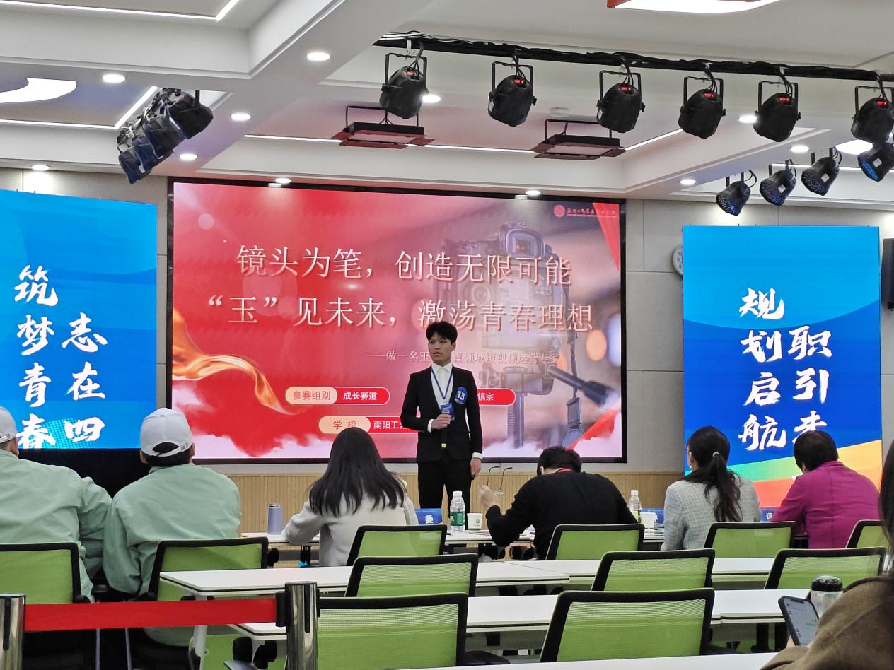 3月13日,全国第二届大学生职业规划大赛河南省赛现场传来捷报。我校商学院电子商务专业2023级学生邓镇宗凭借“镜头为笔,创造无限可能;‘玉’见未来,激荡青春理想”的创意策划,在成长赛道职教组中展现卓越风采。本次大赛由招生就业处张晓南老师、商学院王俊旭老师、袁炅老师组成的指导团队全程护航,共同呈现了一场传统工艺与现代电商深度融合的精彩演绎。