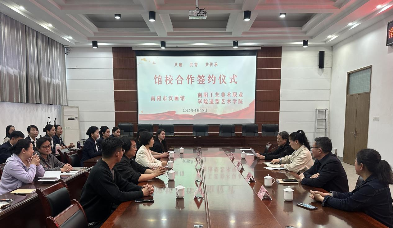 为精准赋能职业教育的实践教学需求,深化地方协同育人机制,完善馆校合作交流平台,4月15日上午,我校造型艺术学院与南阳汉画馆共建“校馆合作基地”签约授牌仪式在南阳汉画馆顺利举行。南阳工艺美术职业学院副校长李艳丹,南阳汉画馆党委副书记郭靖、副馆长王强,造型艺术学院院长王超麟等教师代表及市汉画馆全体工作人员共同出席授牌仪式并成功签约。