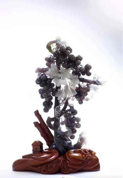 创作说明:作品为和田玉紫·白双色玉料。紫色在文化和历史中具有丰富的象征意义,涵盖了高贵、神秘、优雅、权威等多个方面。紫色设计为葡萄,白色做叶子藤蔓。意味着子孙众多,家族的劳动力充足,能够创造更多的财富和资源,从而保障家族的生存和发展。同时,子孙的繁衍也是家族血脉的延续,让家族的荣耀和传承得以继续。