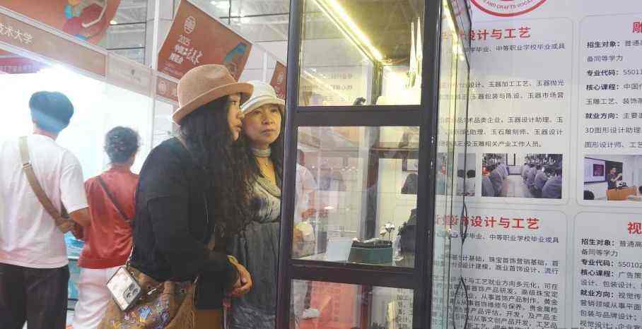 珠宝玉雕学院党支部副书记闫良表示:“此次参展不仅是教学成果的集中展示,更是职业教育与传统文化深度融合的生动实践。”教学顾问王晓峰指出,作品从设计到打磨全程由师生协作完成,体现了“产教融合、以赛促教”的人才培养理念。实训中心主任时晨则为观众现场讲解玉雕技艺,让传统工艺“活起来”,吸引众多观众驻足体验。