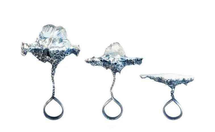 创作说明:敬畏自然应无时无刻地铭记于心,冰山的消融,恰是一个海洋的悄悄移动,以当代首饰的概念提醒人们对环境的保护。