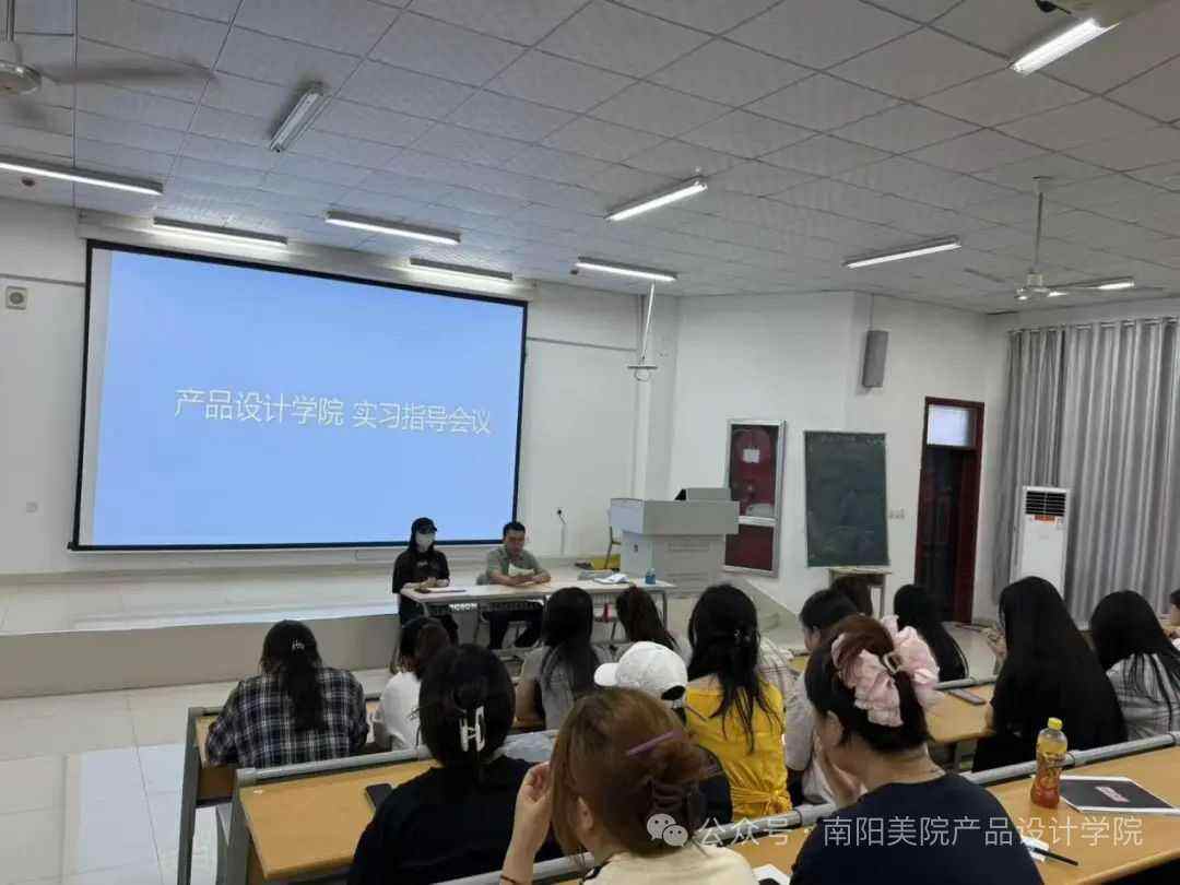 为扎实推进教学改革,强化实践教学管理效能,6月4日晚,产品设计学院成功举办23级学生实习指导会。副院长邹鹏旭、艺术设计专业主任张炜炜、办公室工作人员侯舒及23级艺术设计专业全体学生参会,围绕岗位实习展开深度研讨,共探实习实训创新路径。