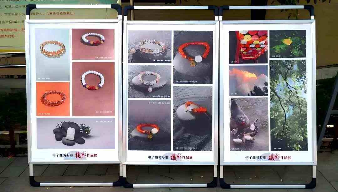 此次展出的作品均源自电子商务专业《产品摄影》课程的实践教学成果。从科技感十足的数码产品,到温润雅致的玉石珠宝,这些电商领域的核心商品,在师生的镜头下焕发全新魅力。课堂上,老师们摒弃枯燥的说教,带着学生围绕真实产品开展实训,抱着相机研究不同材质的反光特性,反复调整一盏灯的角度只为找到最迷人的光影,手把手教大家反复钻研光影构图、场景搭建等专业技能,学生们逐步掌握商品视觉营销的核心要义。