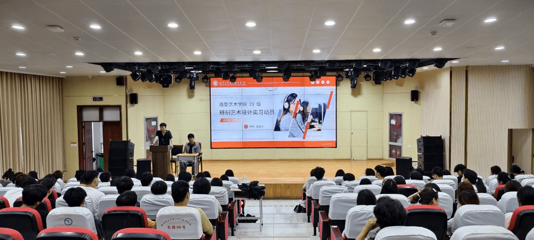 为进一步加强实习教学管理,响应学院政策,提升学生岗位实习的规范性与实效性,确保2023级雕刻艺术设计专业一、二班学生顺利开展实习工作,6月8日下午,造型艺术学院相关负责人在二号教学楼阶梯教室召开实习前动员大会。会议由学院院长、副院长以及相关负责人主持,2023级雕刻艺术设计专业全体学生参会。本次动员大会旨在从多角度对即将开展的岗位实习工作进行政策解读、纪律要求、安全提醒和实践指导,全面推动实习工作的规范开展和高质量落地。