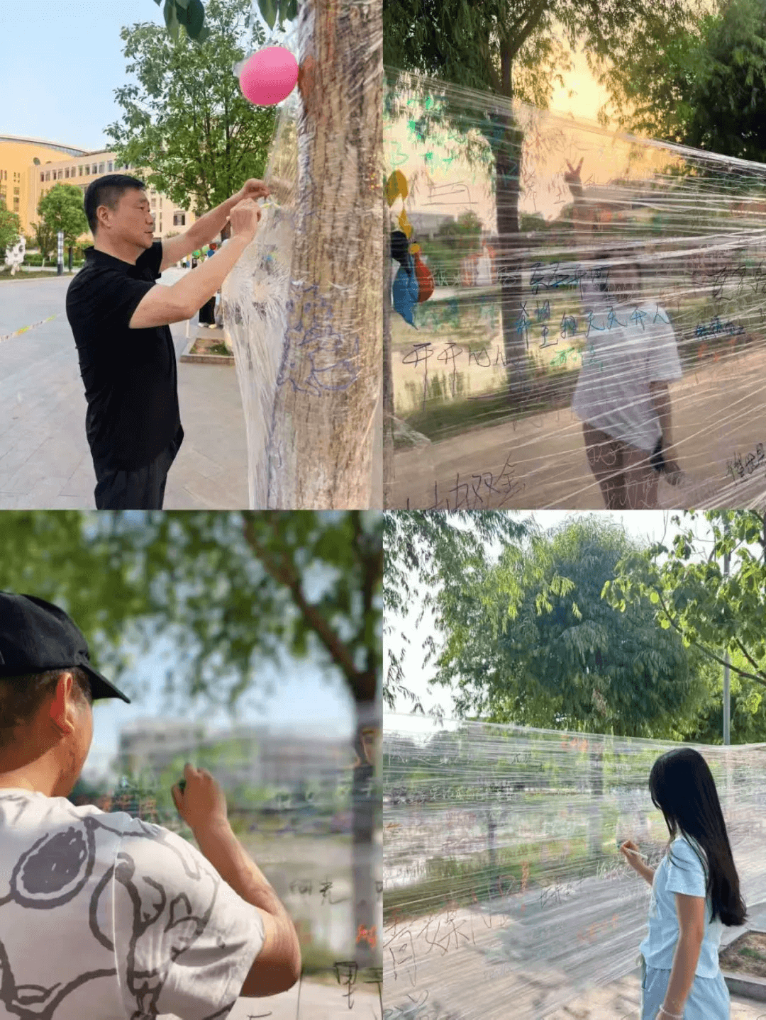 活动伊始,一面由保鲜膜搭建而成的“膜法心愿墙”便吸引了众多同学的目光。大家拿起彩色画笔,在心愿墙上郑重地写下自己的愿望和对他人的祝福。