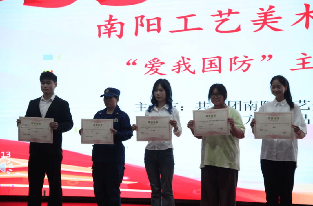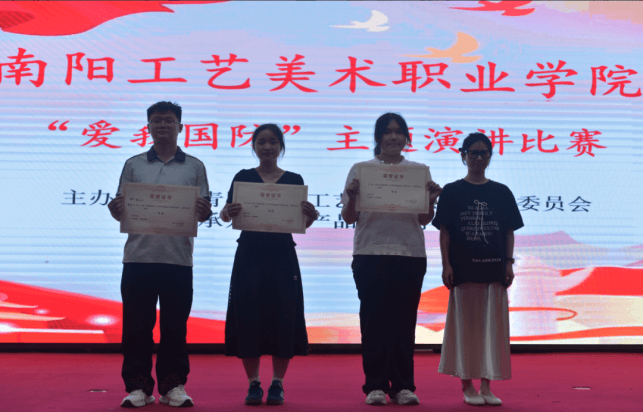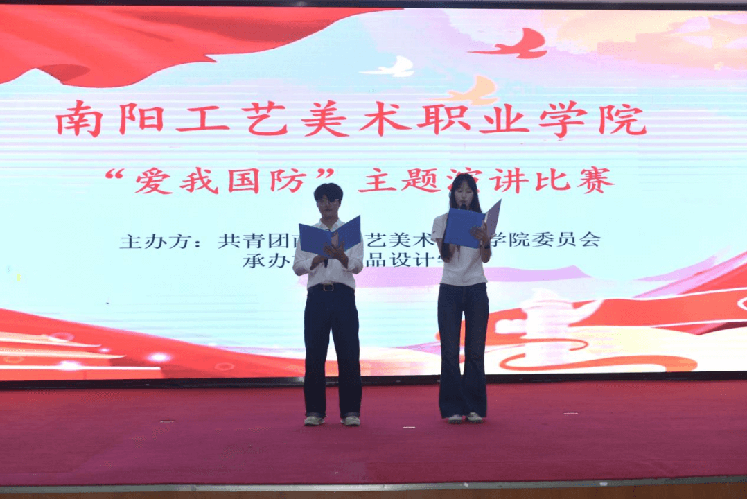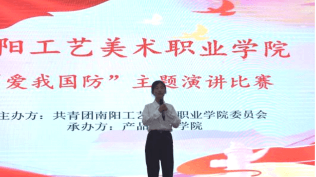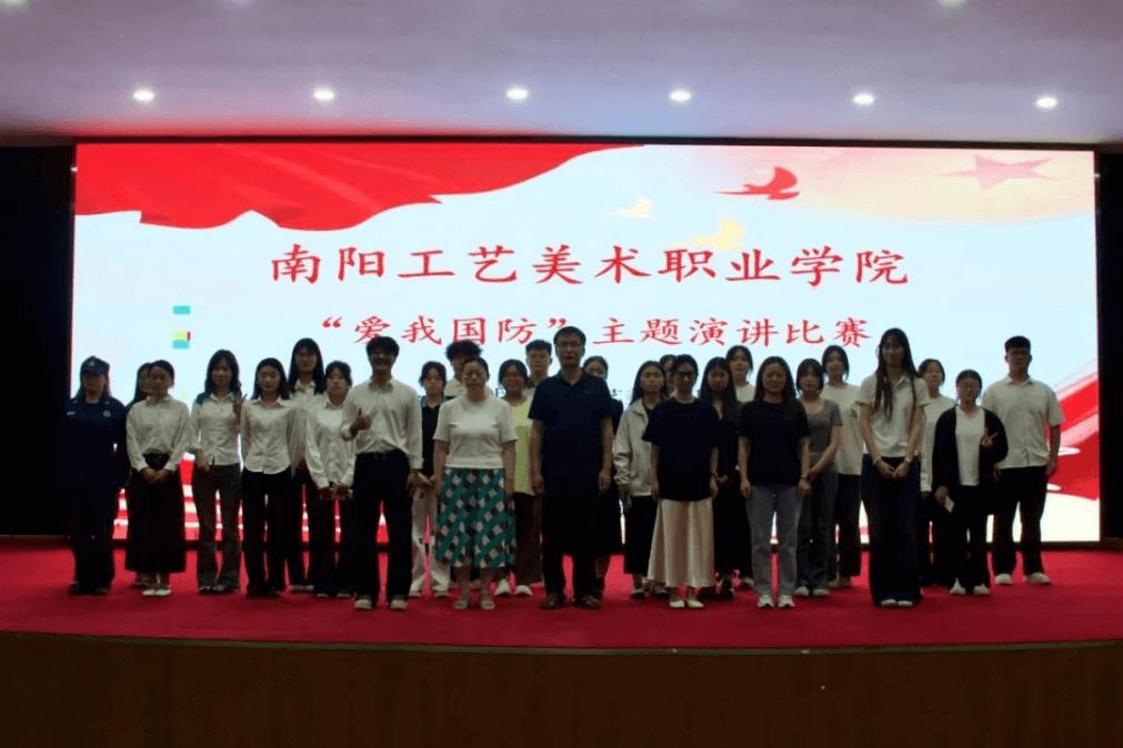 2025年6月5日,由共青团南阳工艺美术职业学院委员会主办、产品设计学院团总支承办的 “爱我国防” 主题演讲比赛暨颁奖典礼顺利落下帷幕。由产品设计学院团支部副书记王果、校团委老师李玥瑶、产品设计学院团学办主任刁硕、产品设计学院老师高小燕及学生代表组成评委团,200余名师生出席活动。