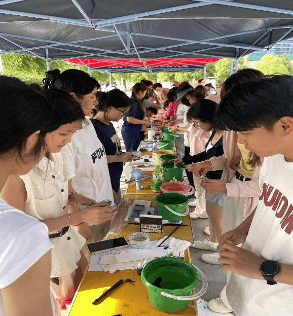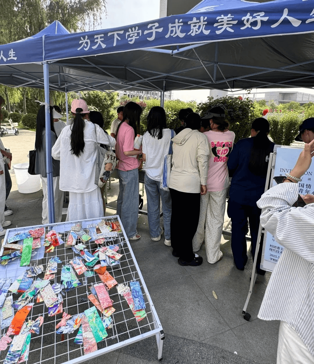 此次书签制作活动采用了独特的漂漆现场 DIY 形式。活动现场,色彩斑斓的漆液在水中晕染,如同梦幻的画卷。红、黄、蓝、绿等多种颜色相互交织,恰似青春的色彩在肆意绽放。同学们围在工作台前,眼神中满是好奇与期待。