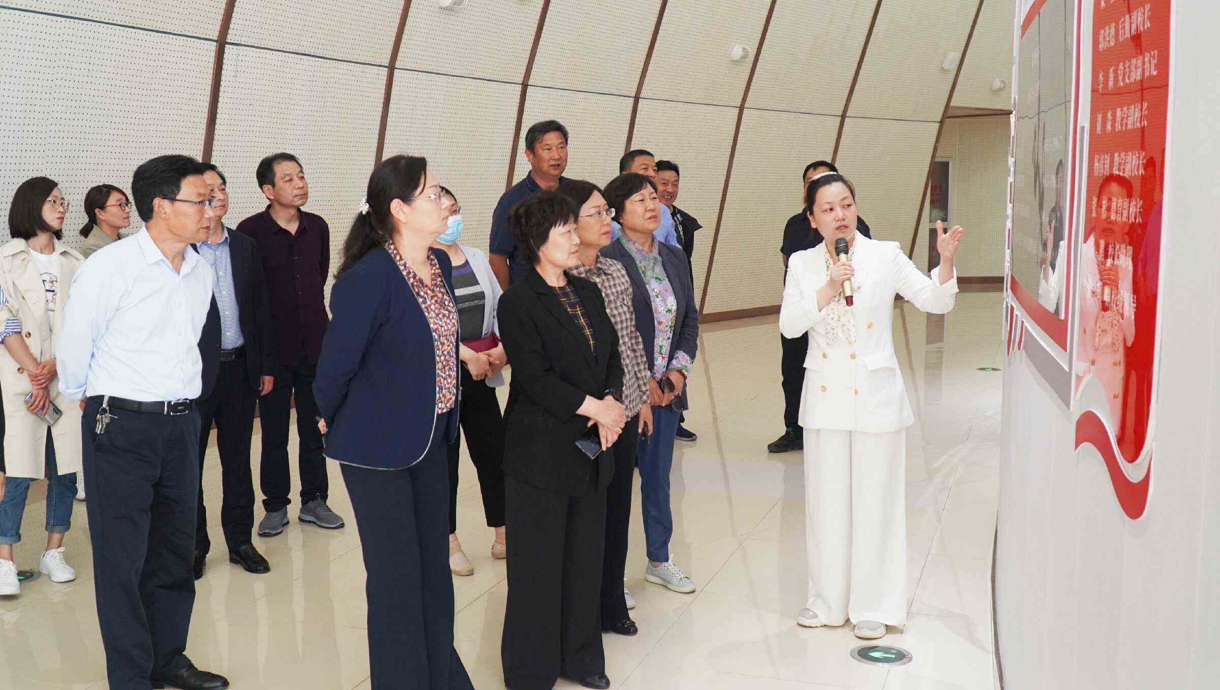 5月12日下午,春和景明,南风如熏,南阳市政协副主席、民盟南阳市委主委华道梅,市政协教科卫体委员会主任吴桂荣等市政协调研组一行五人莅临南阳工艺美术职业学院,开展“推动职业教育高质量发展,建设人力资源强市”专题调研。镇平县县委副书记、县长黄静,县委副书记赵毅辉,副县长、公安局局长王长师,政协副主席丁长海,党组成员余亚军,县教体局党组书记、局长郭学忠及教育系统有关领导陪同调研。