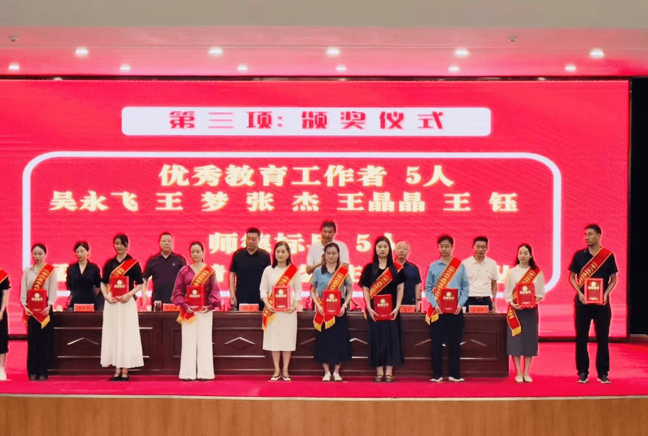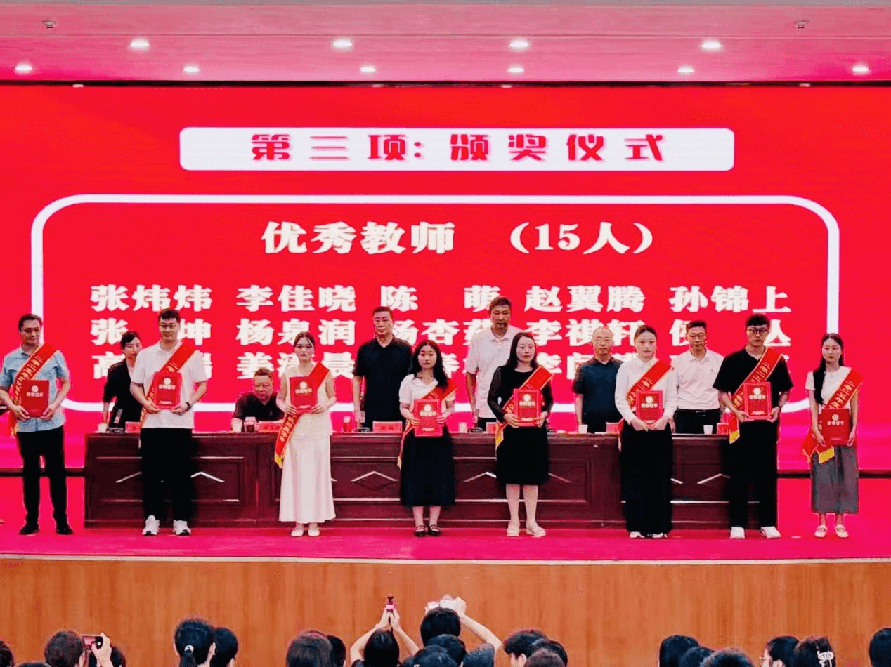 纪委书记辛玉建为5名“优秀教育工作者”、5名“师德标兵”颁奖,他们在管理服务、师德师风建设中彰显担当;