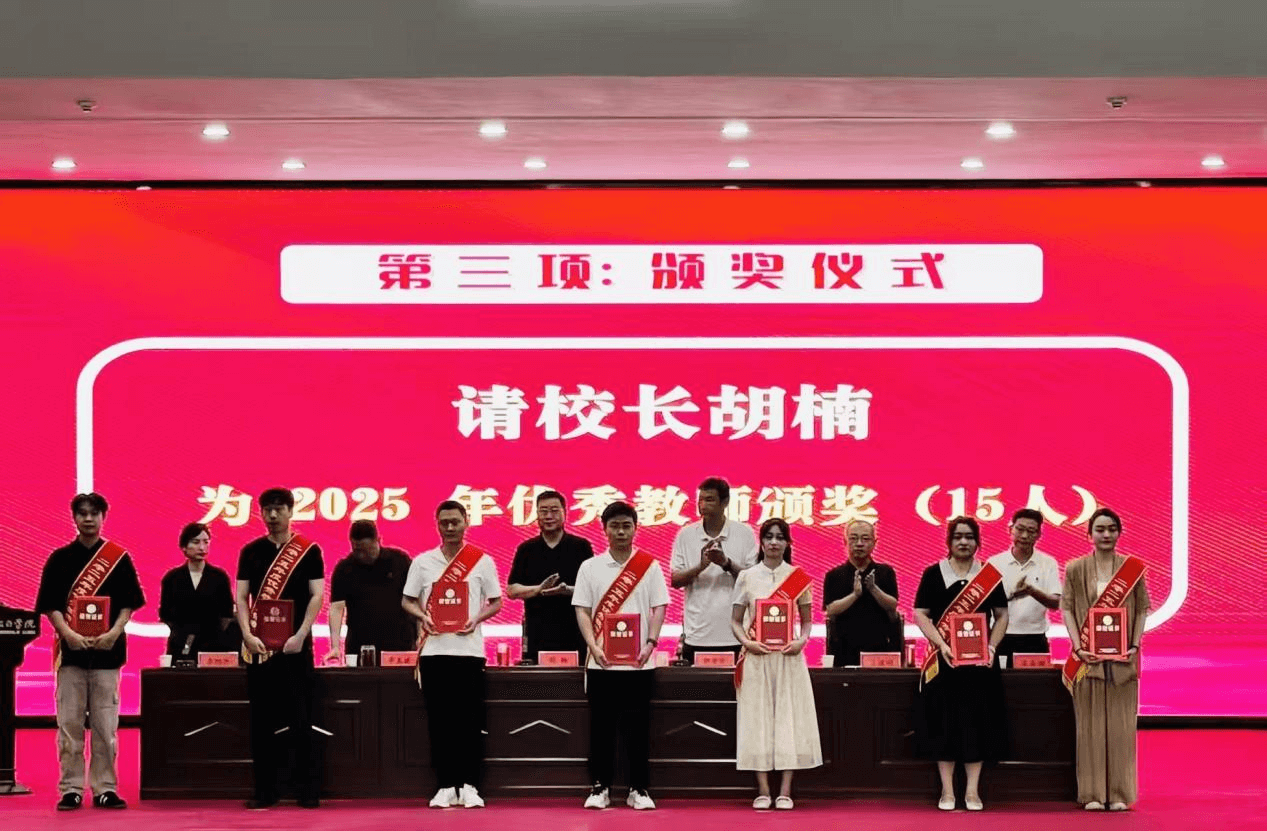 校长胡楠为15名“优秀教师”颁奖,他们在教学一线深耕细作,以技艺传承与创新赋能人才培养;