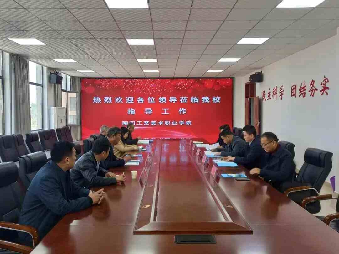 考察团一行首先对南阳工艺美术职业学院实训基地、图书阅览室、功能区域、基础建设进行了实地察看。随后,在学院综合楼三楼会议室召开座谈会,会议由县教体局党组书记、局长郭学忠主持。